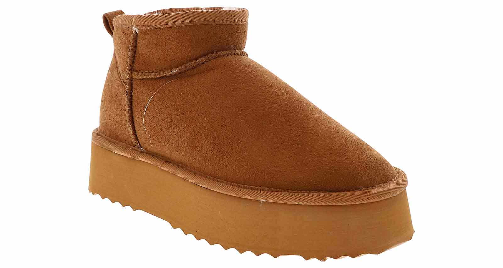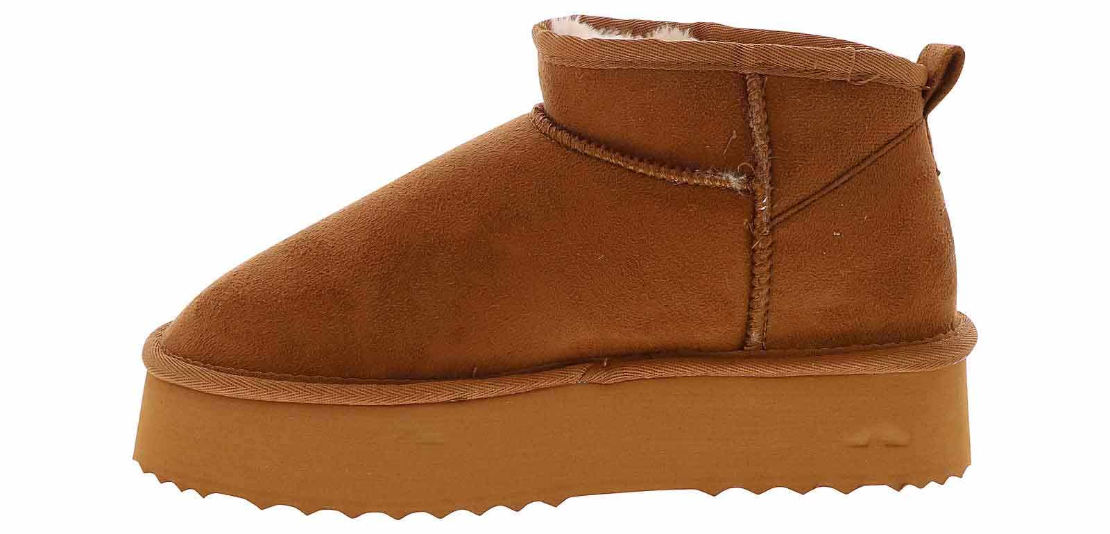 Stay cozy with the Apres Akari Women’s Wide-Width Platform Boot! This slip-on ankle boot features a cushioned insole with faux fur lining to give you all the warmth this season. The synthetic suede upper and durable rubber outsole ensure long-lasting, fashionable wear. Enjoy a snow day in or a fun night out with the Apres Akari Women’s Wide-Width Platform Boot!