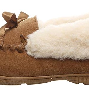 If you prefer comfort and classic style in your slippers, just slip your feet into the cozy Bearpaw Indio Brown Women’s Slipper Moccasin. The fluffy wool blend that spills over the cuff will wrap your feet in warmth and cloud-like softness. The Bearpaw Indio Brown Women’s Moccasin will tempt you to wear them to the office.