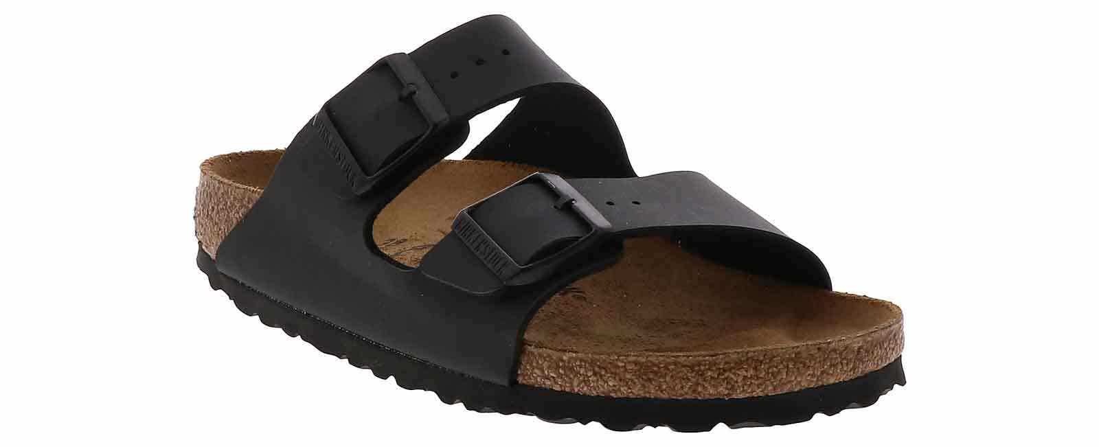 The Birkenstock Arizona Women’s Footbed Sandal is in this season! This slip-on sandal is the perfect cute and casual pairing with its sleek black, synthetic leather upper and lightweight design. Two adjustable straps with metal pin buckles ensure this style slips on most comfortably. Step out in iconic style with the Birkenstock Arizona Women’s Footbed Sandal!