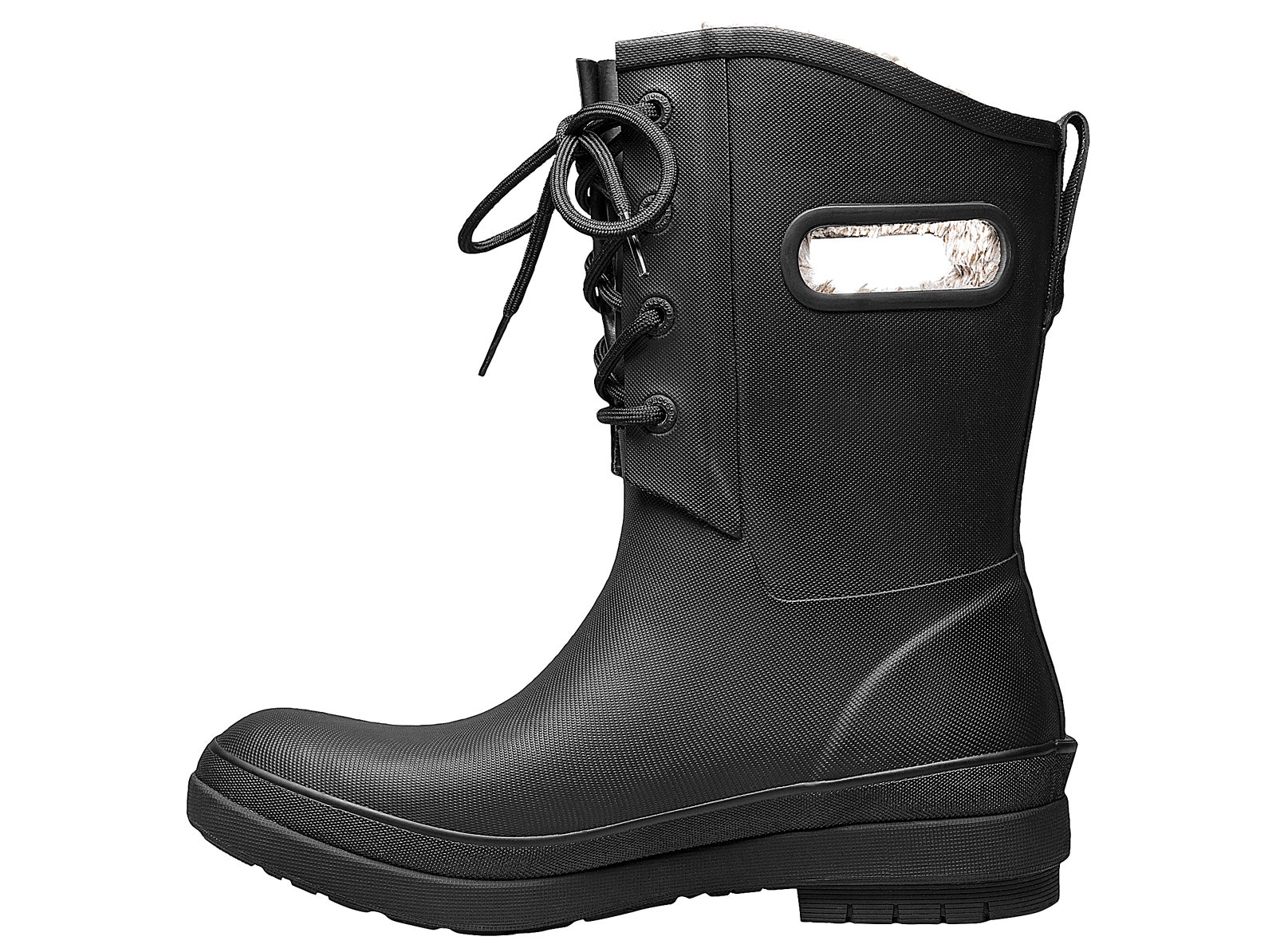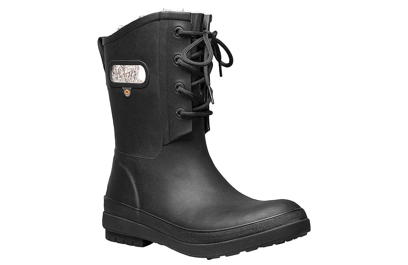 These cute Bogs Amanda Plush II Lace women’s boots feature a slip on shoe style with a lace up closer for the perfect fit. These rubber boots are 100% Waterproof and feature a slip-resistant sole, faux fur plush lining for warmth and are comfort rated to -13°F/-25°C. BOGS linings evaporate sweat to keep feet dry.