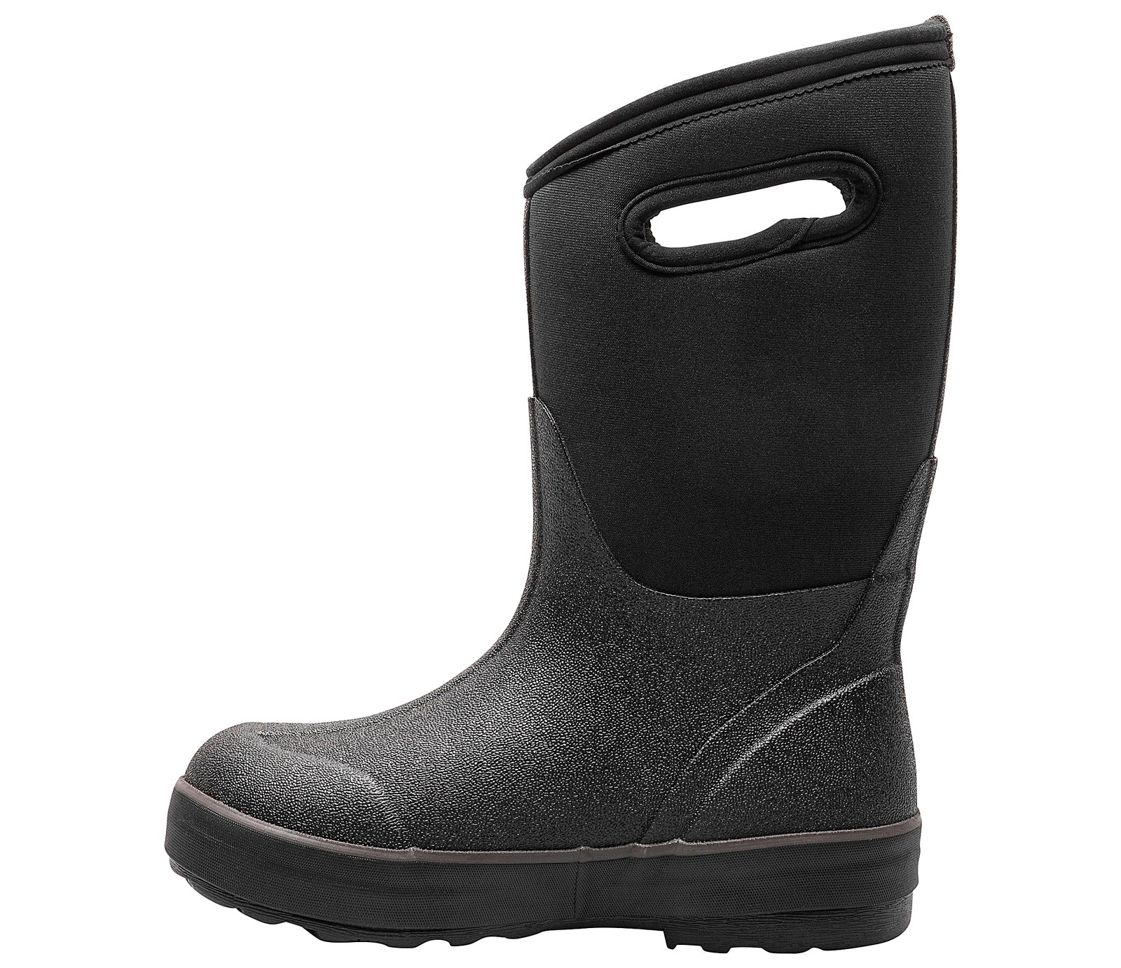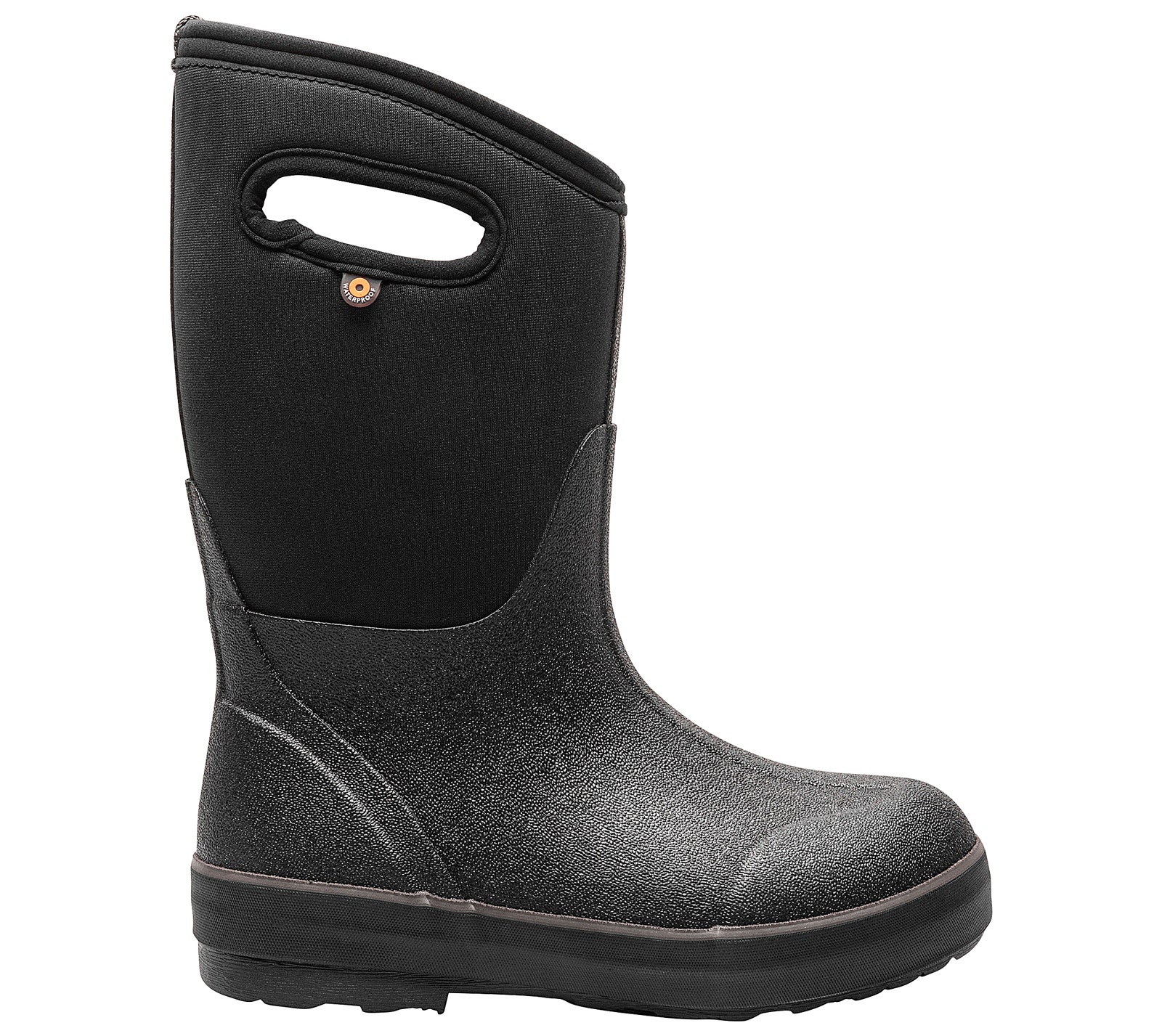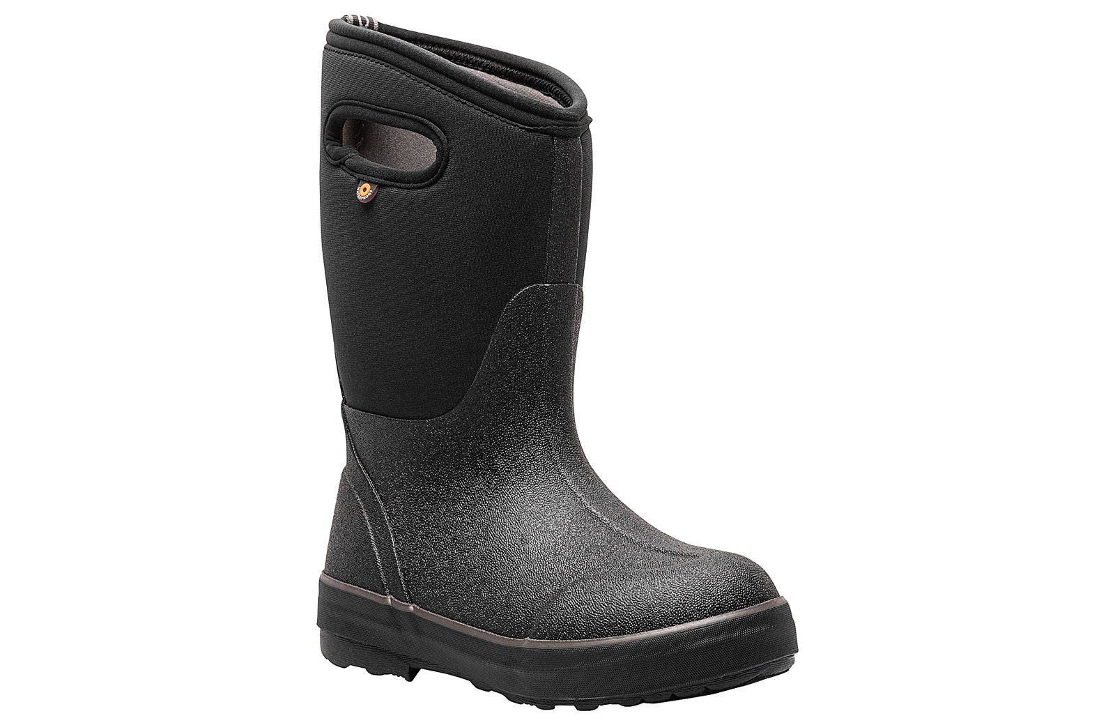 Keep their feet warm and dry with the Bogs Classic II Solid Black Youth Boys’ (1-7) Rainboot! This mesh and rubber upper style feature easy pull-on handles with waterproof and insulating capabilities. The durable rubber outsole makes it easy for your child to handle the elements while wearing this boot. He can make a splash while wearing the Bogs Classic II Solid Black Youth Boys’ (1-7) Rainboot!