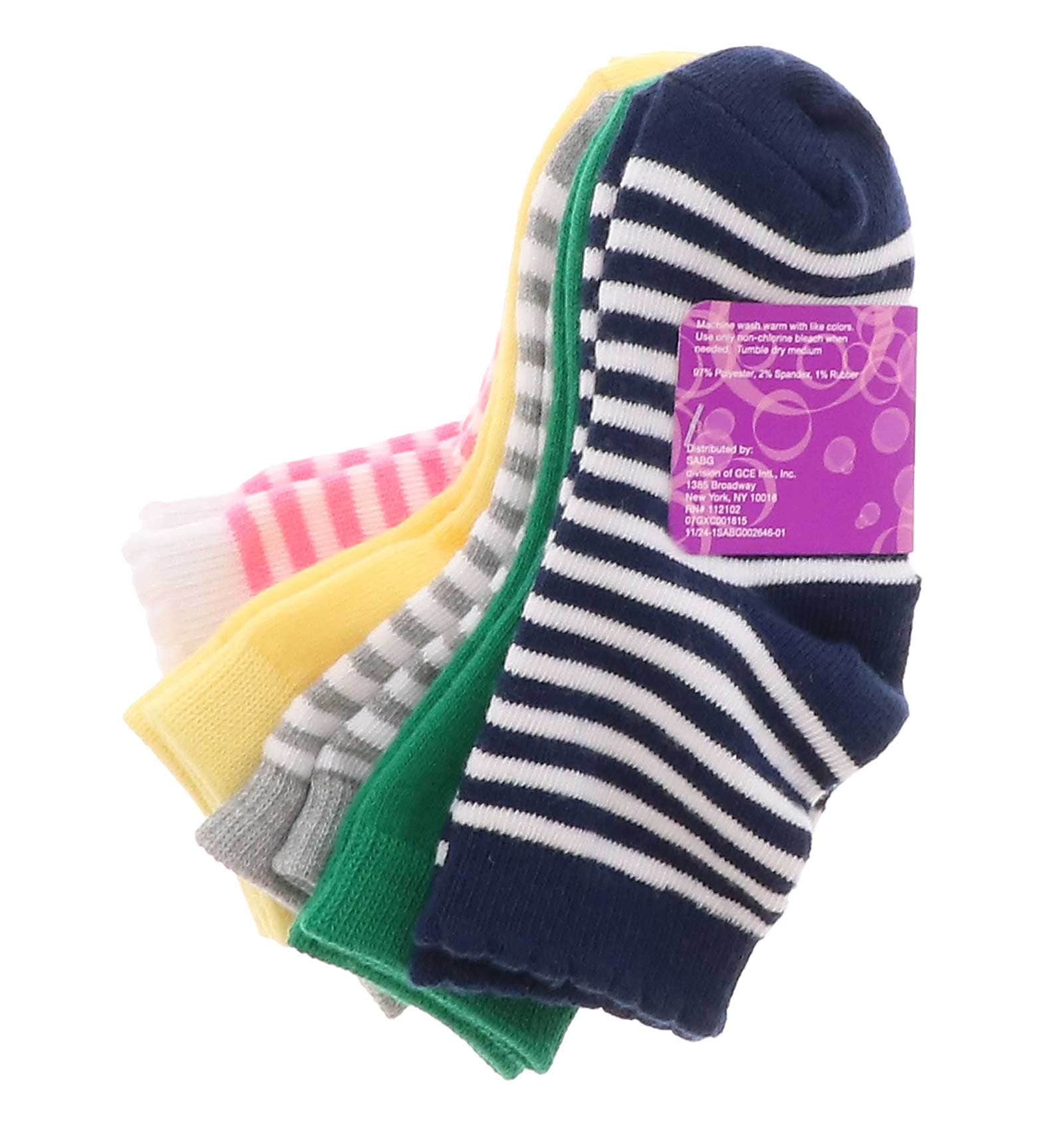 BTW 5-Pack Bright Stripes Toddler Girls’ Anklet Socks