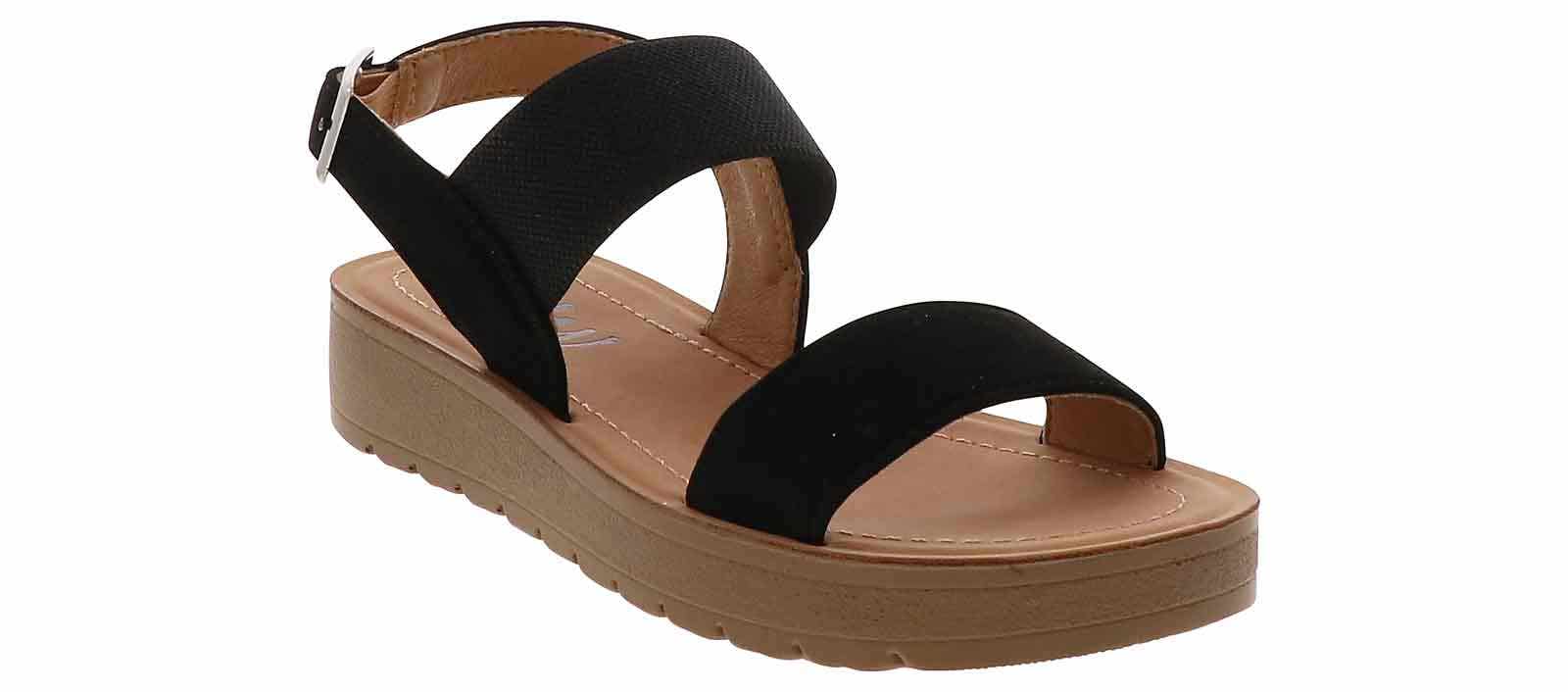 Dress her up in style with the BTW Maeve Youth Girls’ (11-5) Platform Sandal! This cute sandal features an adjustable, buckle ankle strap as well as an elastic upper band that will keep her feet secure all day. The small platform will make her stand out in every room when she wears the BTW Maeve Youth Girls’ (11-5) Platform Sandal.