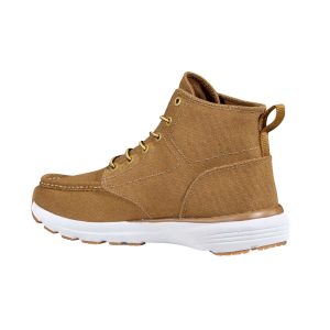 The Carhartt Haslett Moc Chukka Men’s Soft Toe Work Boot has your back. These lightweight boots feature exposed stitching, canvas upper, and lace-up closure. The sweat-wicking lining keeps your feet dry and fights odors. The cushioned insole is shock-absorbing, while the padded collar offers extra cushioning. The rubber outsole is slip resistant while also providing lightweight comfort. The Carhartt Haslett Moc Chukka Men’s Soft Toe Work Boot will take your workday to the next level.