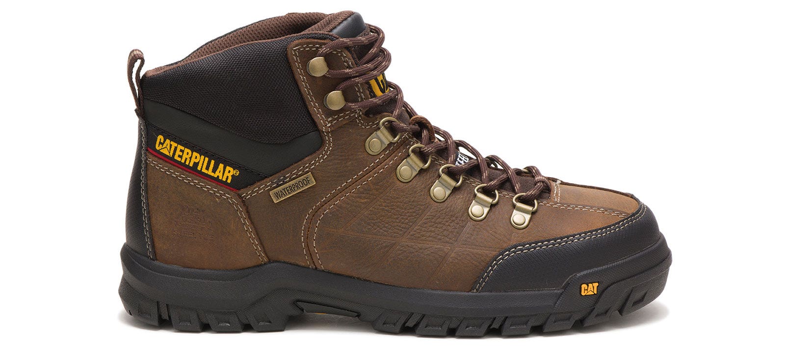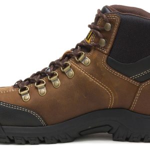 Keep yourself dry while working outdoors in these Caterpillar Threshold Men’s Steel Toe Work Boots. This style features a waterproof leather upper with a steel toe for protection. The Caterpillar Threshold Men’s Steel Toe Work Boots have Electrical Hazard protection and a slip resistant outsole.
