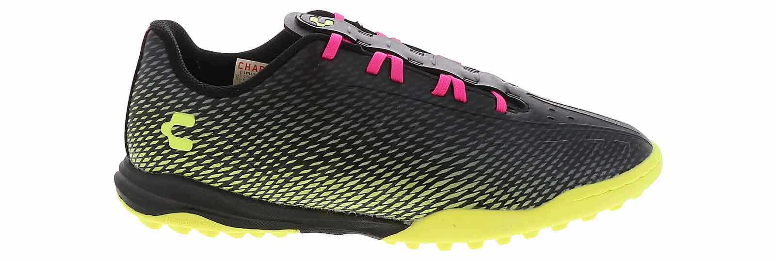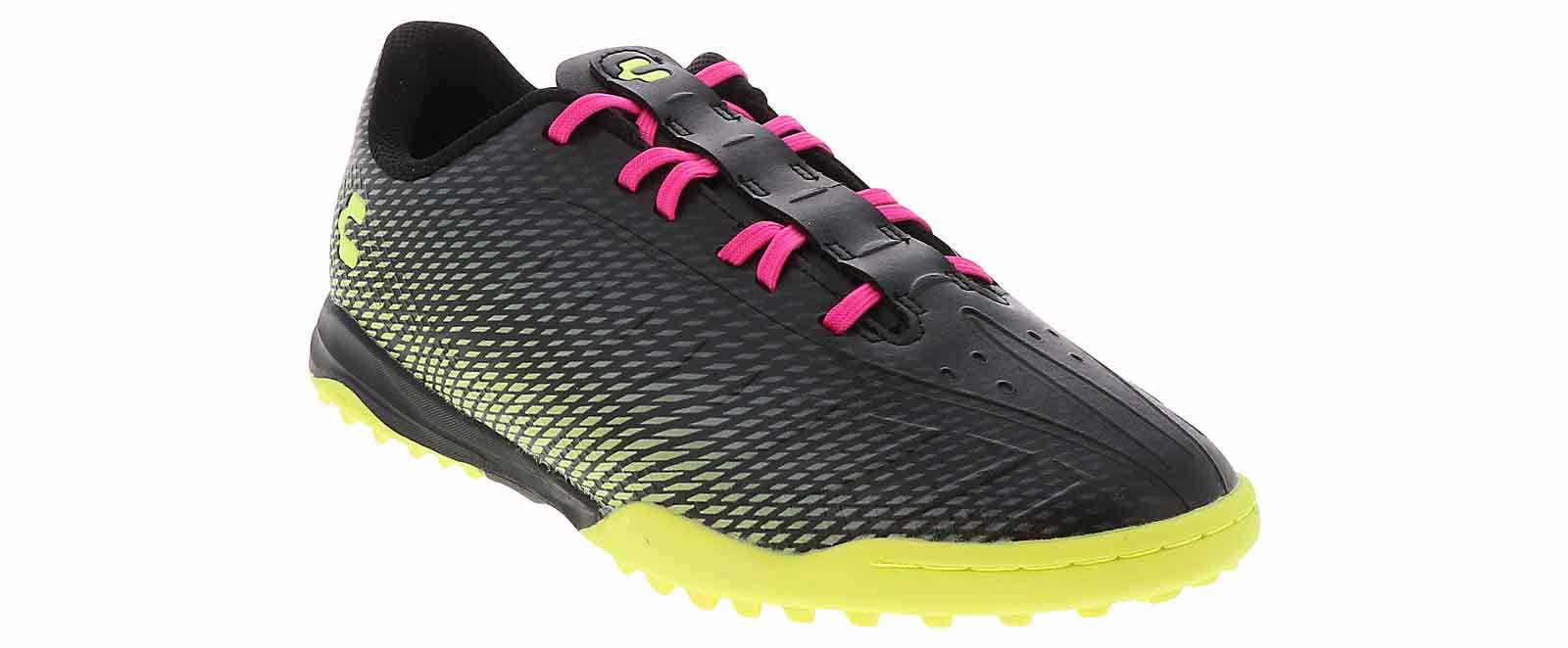 Fuel his passion for soccer with the Charly Zinetik Junior Girls’ (4-7) Soccer Cleat! This black and green design features a secure lace up closure and a reliable rubber outsole that allows him to dominate the field. The cushioned insole will keep them comfortable with every kick when they play the game wearing the Charly Zinetik Junior Girls’ (4-7) Soccer Cleat!