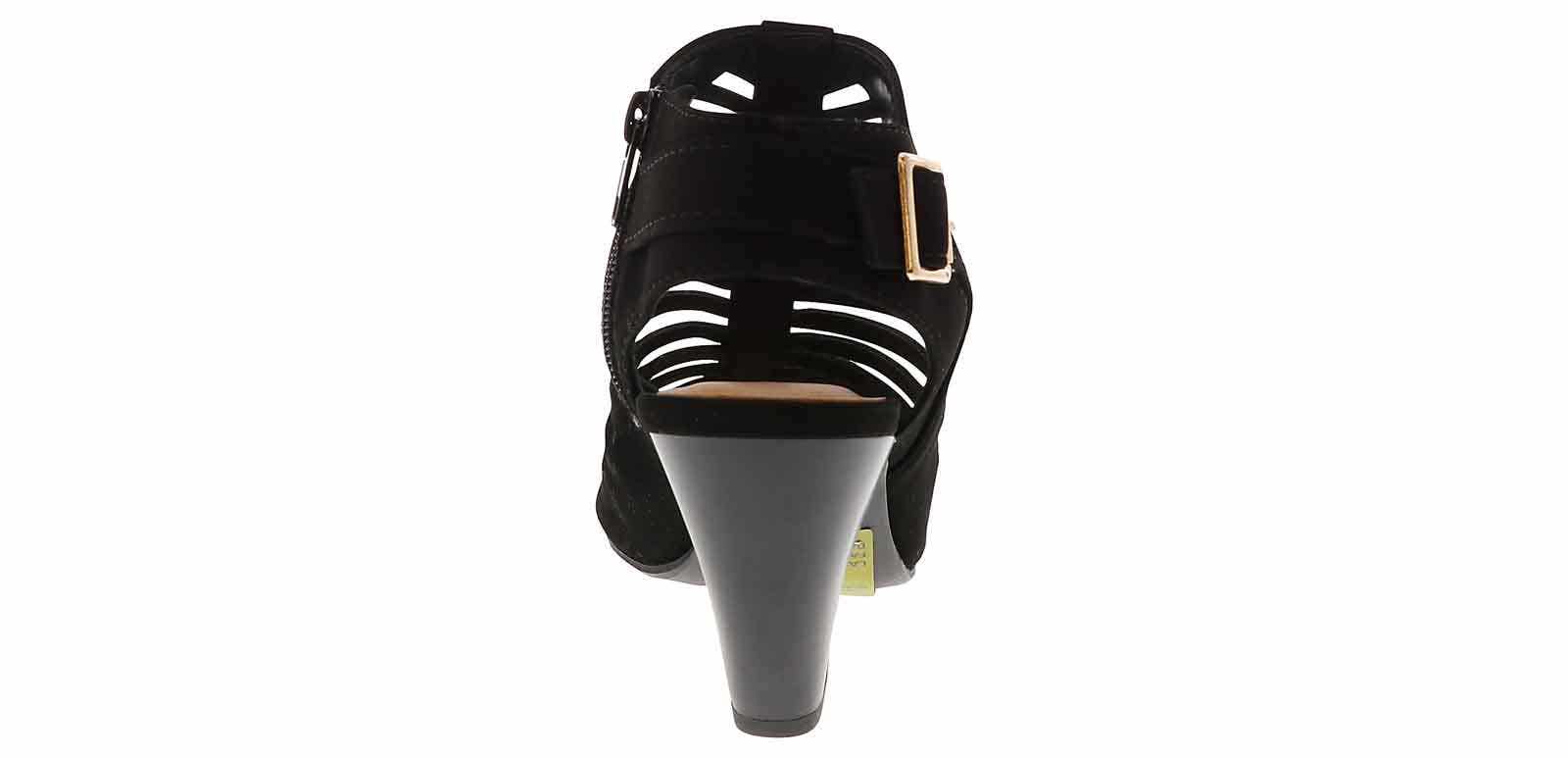 Dress your feet in elegance for any event with these City Classified Shaky Women’s Dress Heel. This style features a black suede upper with an adjustable ankle strap. This heel has a lightly cushioned insole and a comforable 3 inch heel for all day wear. Enjoy an evening out in the City Classified Shaky Women’s Dress Heel!