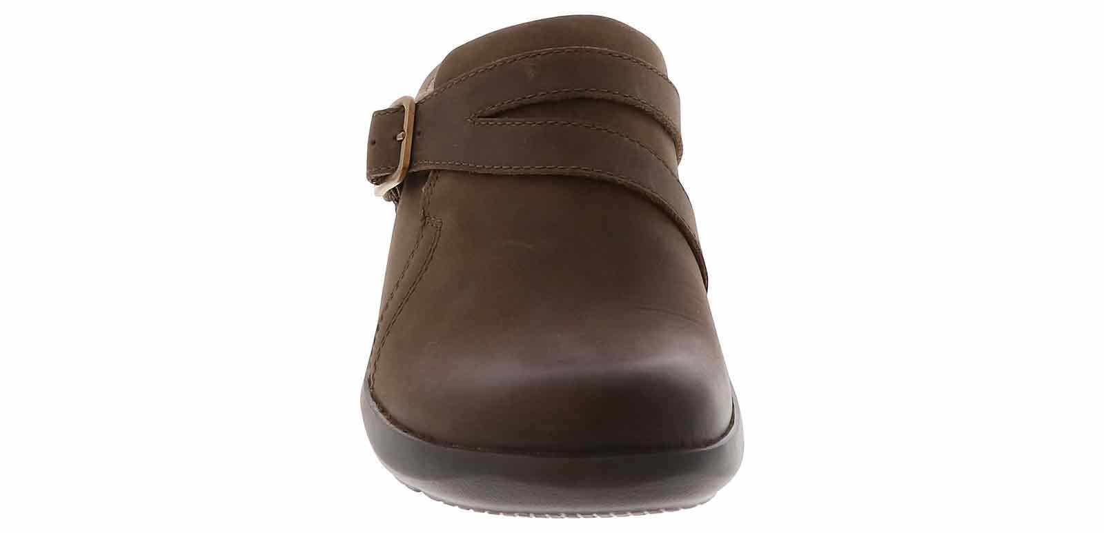 Classy and comfortable is what you get when you’re wearing the Clarks Angie Braley Slate Leather Women’s Comfort Shoe! This stylish shoe features a leather upper with a decorative strap overlay. The stretch-fit entry makes for an easy and convenient on and off. With the comfort insole and rubber outsole, you will have extra cushioning in your heels as you walk or stand. Take on your day one step at a time wearing the Clarks Angie Braley Slate Leather Women’s Comfort Shoe!