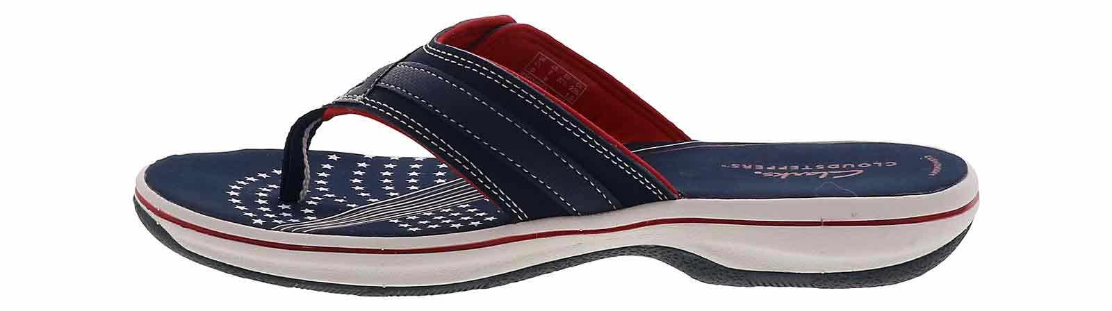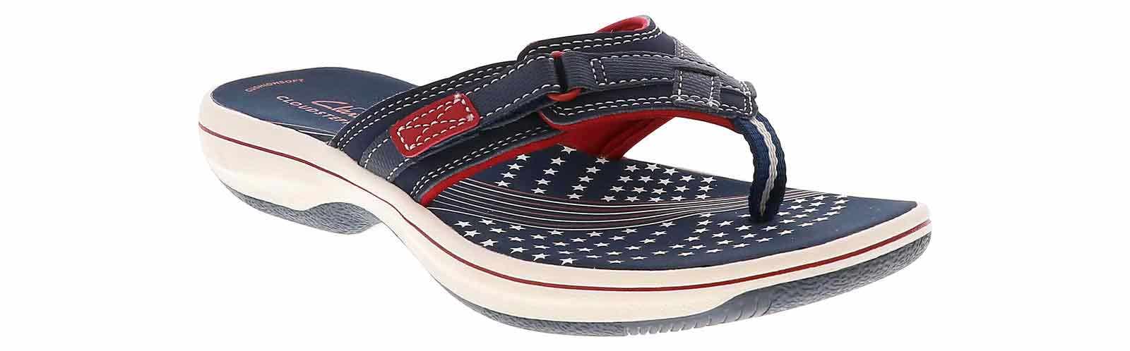 Show your pride and stay comfortable with the Clarks Breeze Sea Cloudsteppers Women’s Sandal! This comfort sandal features an open-toe layout and a hook-and-loop closure that is perfect for on-the-go errands. The cushionsoft footbed supports every step, while the durable outsole provides all the traction you need. The Clarks Breeze Sea Cloudsteppers Women’s Sandal is the best choice to keep you cool and relaxed on warm summer days!