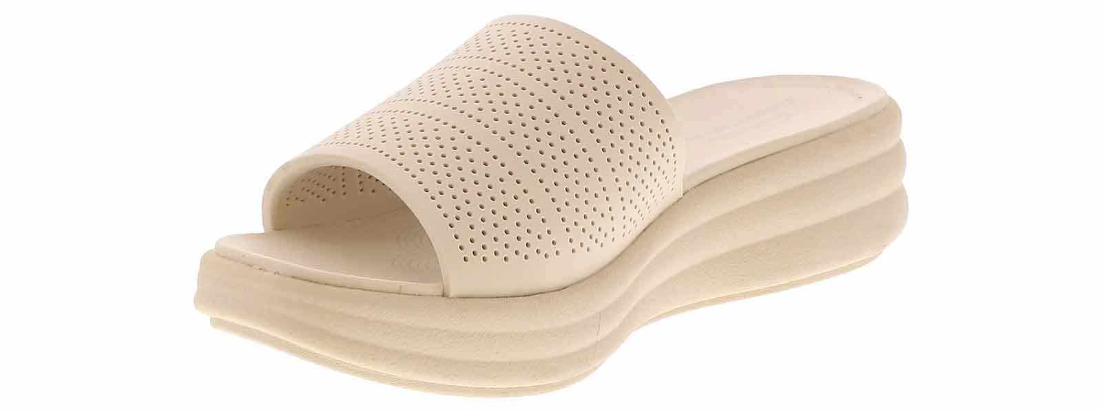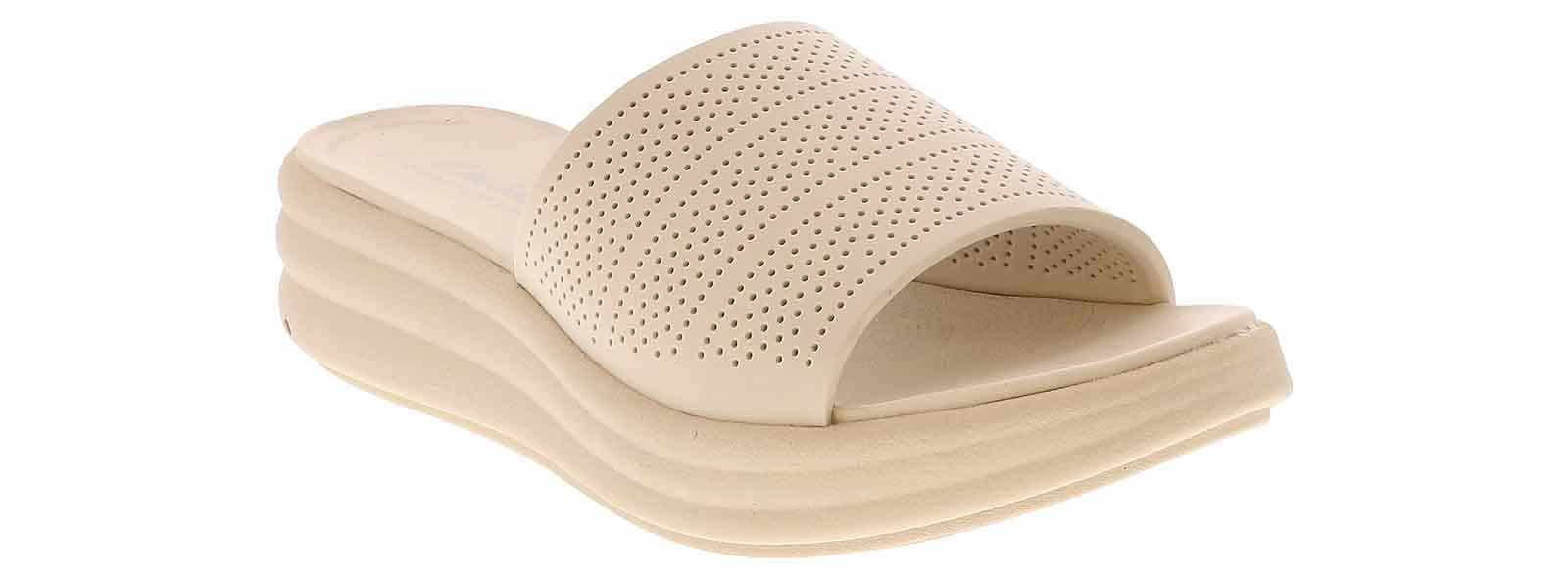 Elevating summer styling with ease in the Clarks Cloudsteppers Drift Twist Women’s Wedge Sandal! Casual days call for laid-back Cloudsteppers sandals and Drift Twist delivers with its breathable textured upper, super-soft foam footbed and bold EVA outsole. Showcasing a curved shape to complement the foot perfectly, step from week to weekend in a lightweight flat you can always count on.