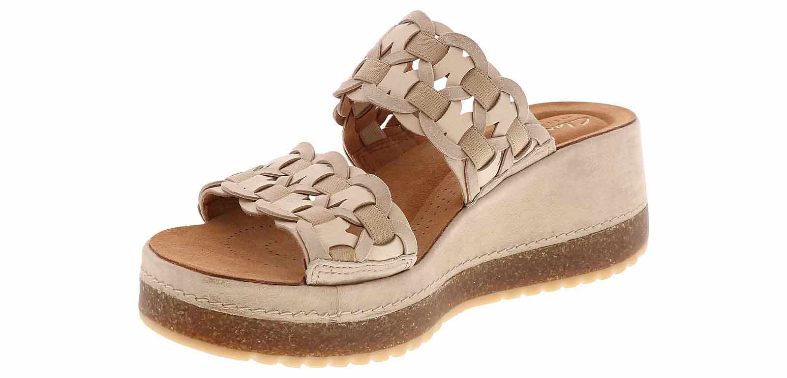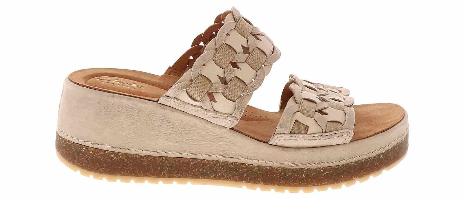 Elevate your style with the Clarks Kassanda Lily Mule Women’s Wedge Sandal! These 2.5-inch wedge heels are the epitome of modern elegance, designed to enhance your look while providing all-day comfort with its contoured cushioned insole and durable rubber outsole. The cushioned footbed and double band ensures a fashionable look. Whether you’re stepping into the office, heading out for a special event, or simply wanting to add a touch of sophistication to your daily attire, the Clarks Kassanda Lily Mule Women’s Wedge Sandal will help you deliver!