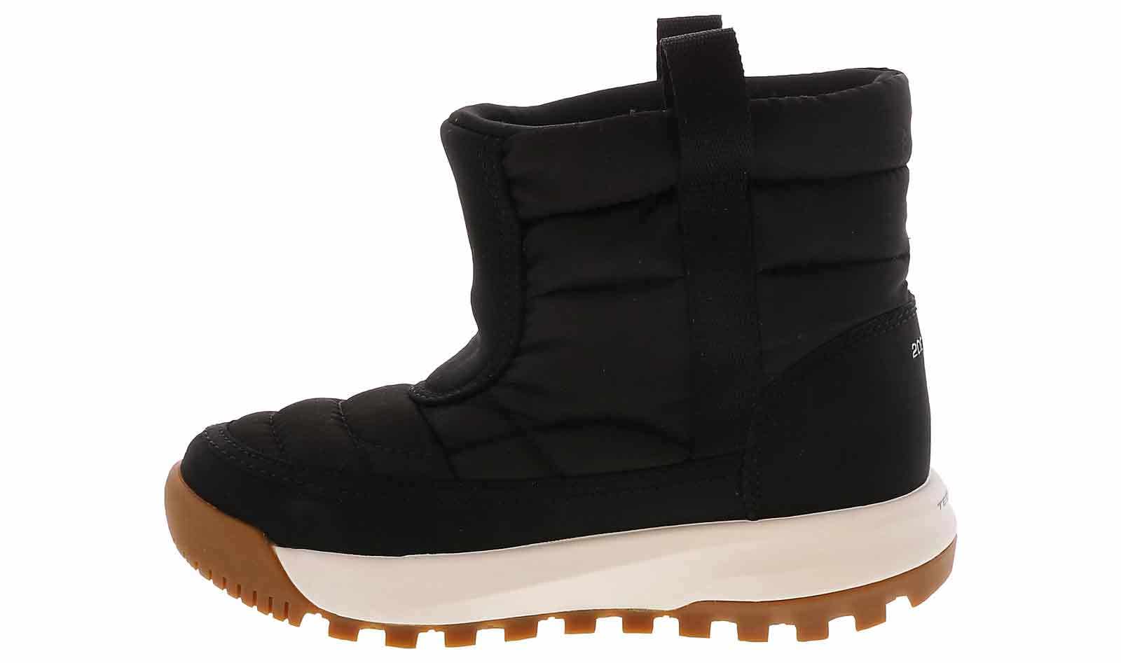 Keep them feeling dry and warm in the Columbia Snowtrot Mid Youth Kids’ (11-3) Snow Boot! This winter boot features a an easy slip-on body with a thermal-reflective lining to retain warmth on those cold snowy days. The rubber grip outsole will keep them safe in the Columbia Snowtrot Mid Youth Kids’ (11-3) Snow Boot!