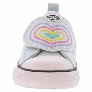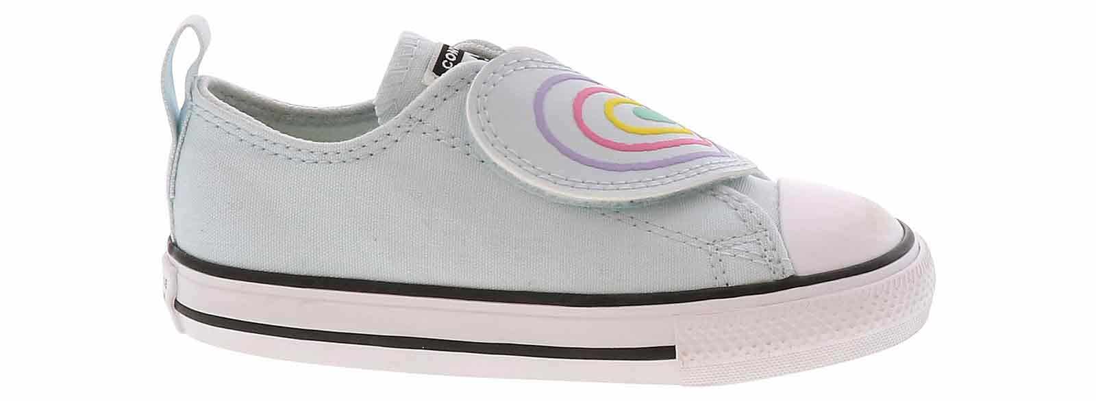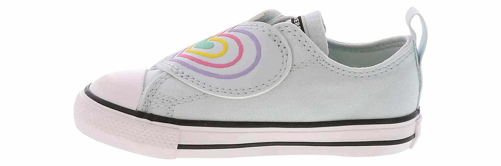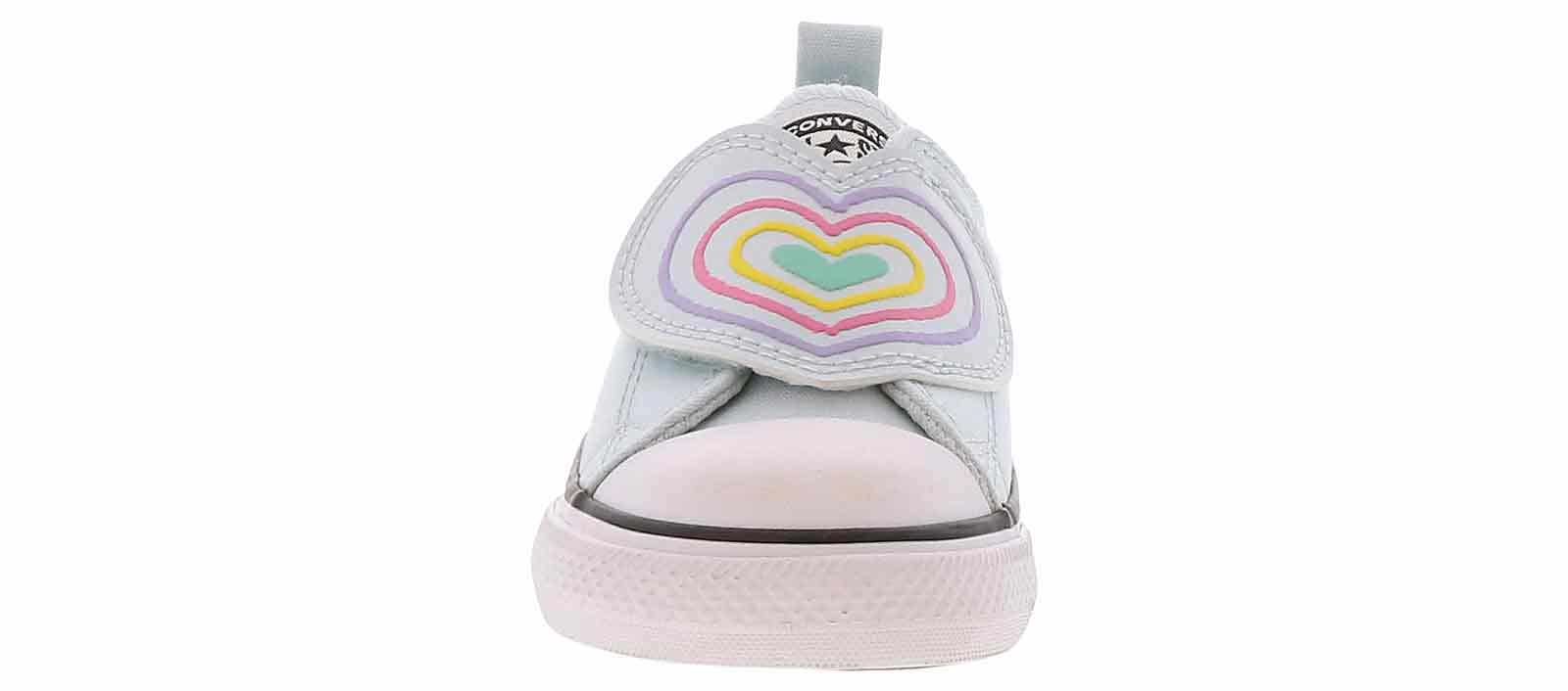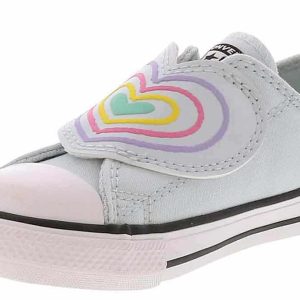 Get ready to level up your little fashionista’s footwear game with the Converse Chuck Taylor All Star Hearts Toddler Girls’ (2-10) Sneaker! This sneaker is a ticket to trendy adventures with its large heart design and convenient slip-on closure with a hidden hook and loop closure under the heart. Let her wear the Converse Chuck Taylor All Star Hearts Toddler Girls’ (2-10) Sneaker for school, playdates, and everything in between!