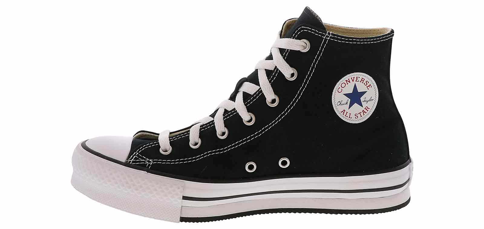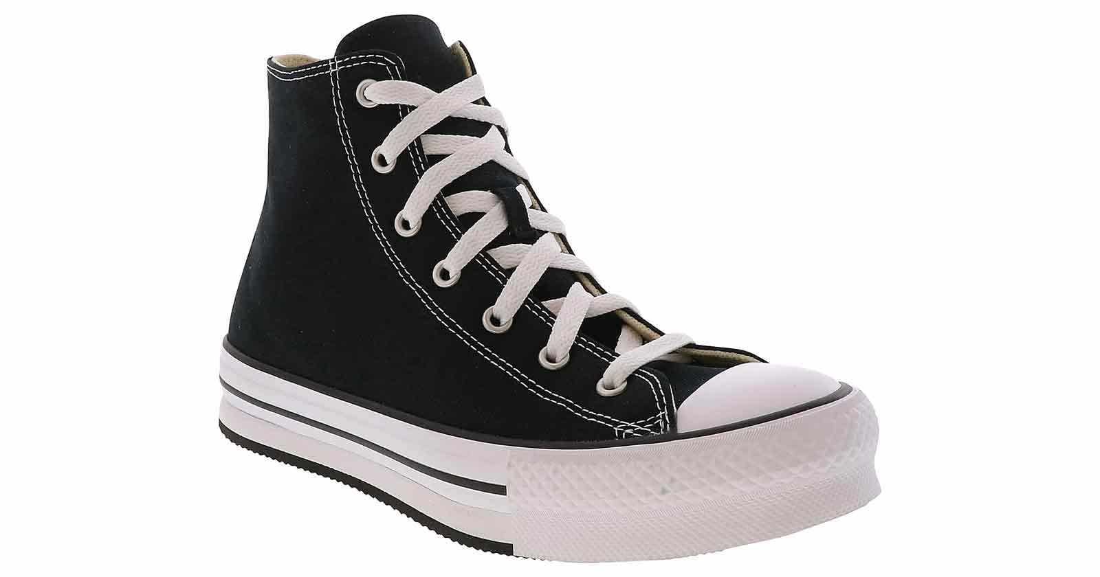 Your little one will look laid back and feel comfortable in these stylish Converse Chuck Taylor All Star Lift Junior Girls’ (4-7) Hi-Top Platform Sneaker. This style features a canvas upper with a mid-ankle height. The cushioned insole and rubber outsole provide superior comfort and support when they wear the iconic Converse Chuck Taylor All Star Lift Junior Girls’ (4-7) Hi-Top Platform Sneaker!