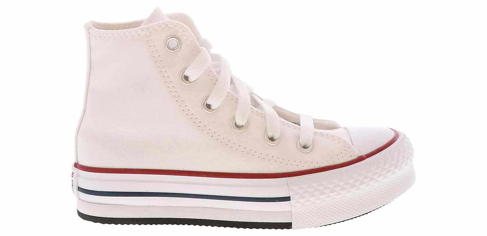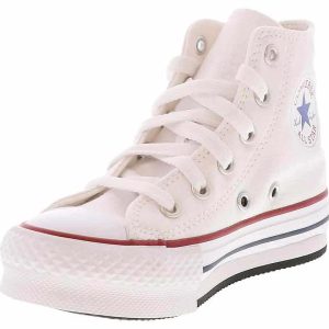 Get her ready for all-day adventures with the Converse Chuck Taylor All Star Lift Youth Girls’ (11-3) Hi-Top Platform Sneaker! This 1.5-inch platform sneaker features a secure lace up closure and a cushioned insole for boost and comfort. The rubber outsole and classic white canvas ensure traction and style. Give her outfits a trendy twist with the Converse Chuck Taylor All Star Lift Youth Girls’ (11-3) Hi-Top Platform Sneaker!