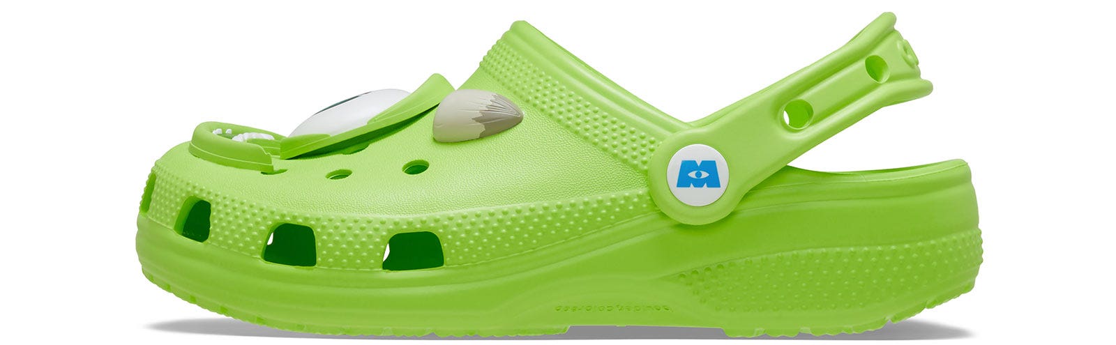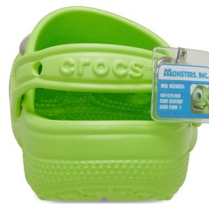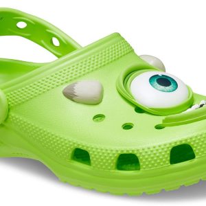 Step into the spotlight with the jokester of Monstropolis, Mike Wazowski! The Mike Classic Clog from our Disney and Pixar Monsters, Inc. collection was designed to embody all of the fun details of your favorite green cyclops, with dimensional face details fixed to the clog’s upper. Sink-in to ultimate comfort with our cushioned Croslite footbed stamped with the Monsters, Inc. logo.