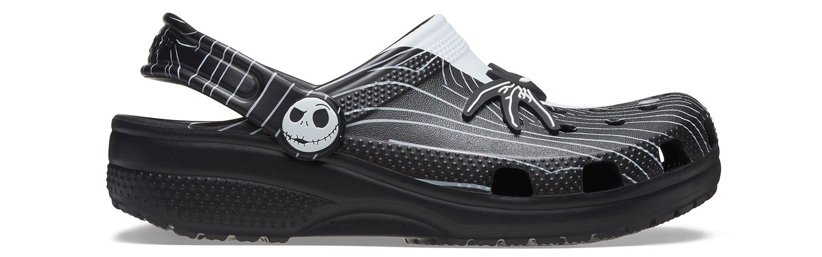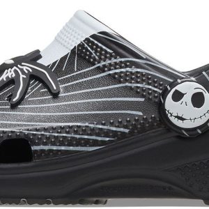 What’s this? It’s an all-new Disney Tim Burton’s The Nightmare Before Christmas Classic Clog. Inspired by Jack Skellington’s suit, it has all the details covered — from the pinstripes to the bat-shaped bowtie. Your kids can wear them anywhere, from Halloween Town to Christmas Town (and beyond).
