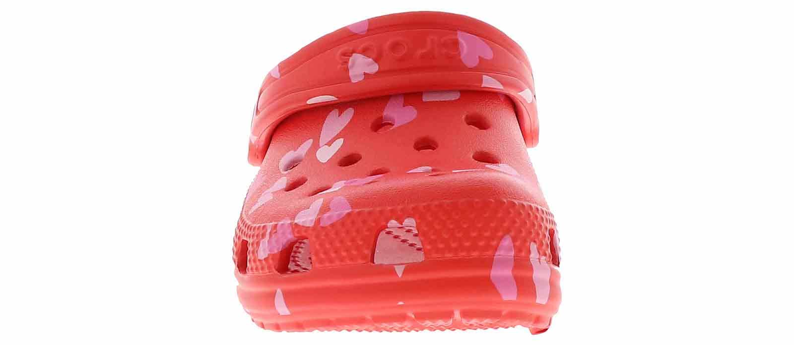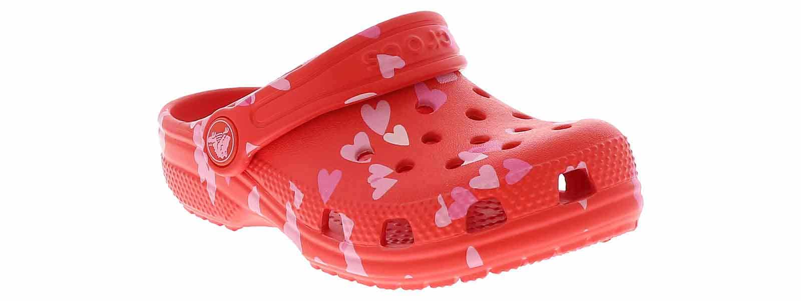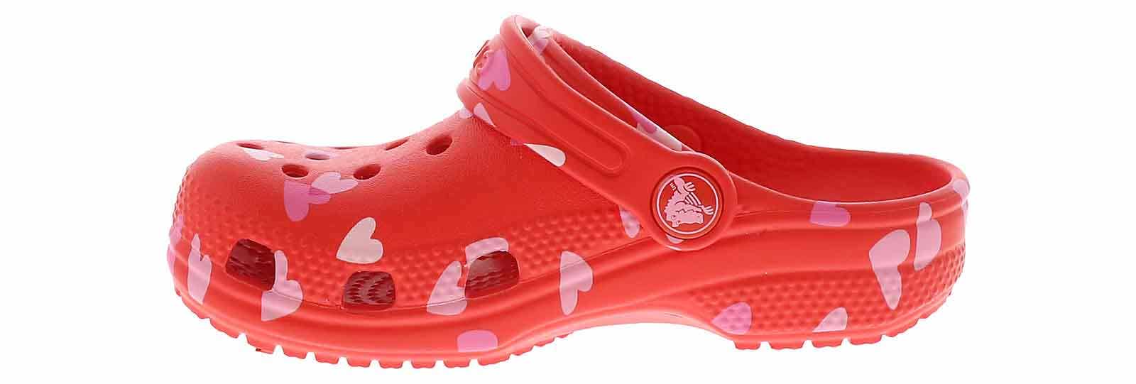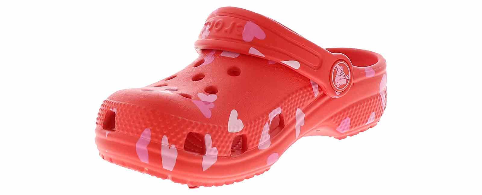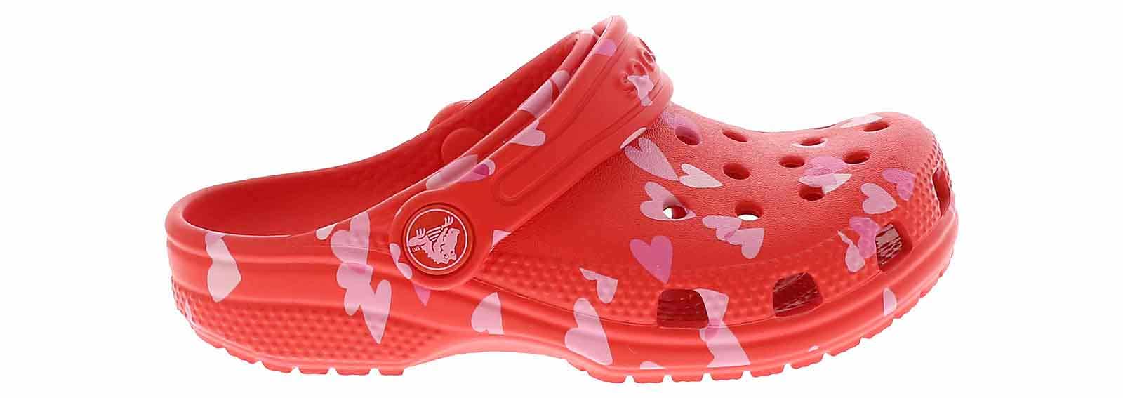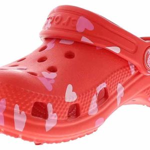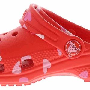 Watch her step into love and comfort with the Crocs Classic Valentines Day Toddler Girls’ (5-10) Clog! This slip-on clog has a lightweight outsole and a pivoting heel strap for a secure fit. The adorable heart pattern makes all her Valentine’s Day festivities all the more fun. Let her spread the love with the Crocs Classic Valentines Day Toddler Girls’ (5-10) Clog!