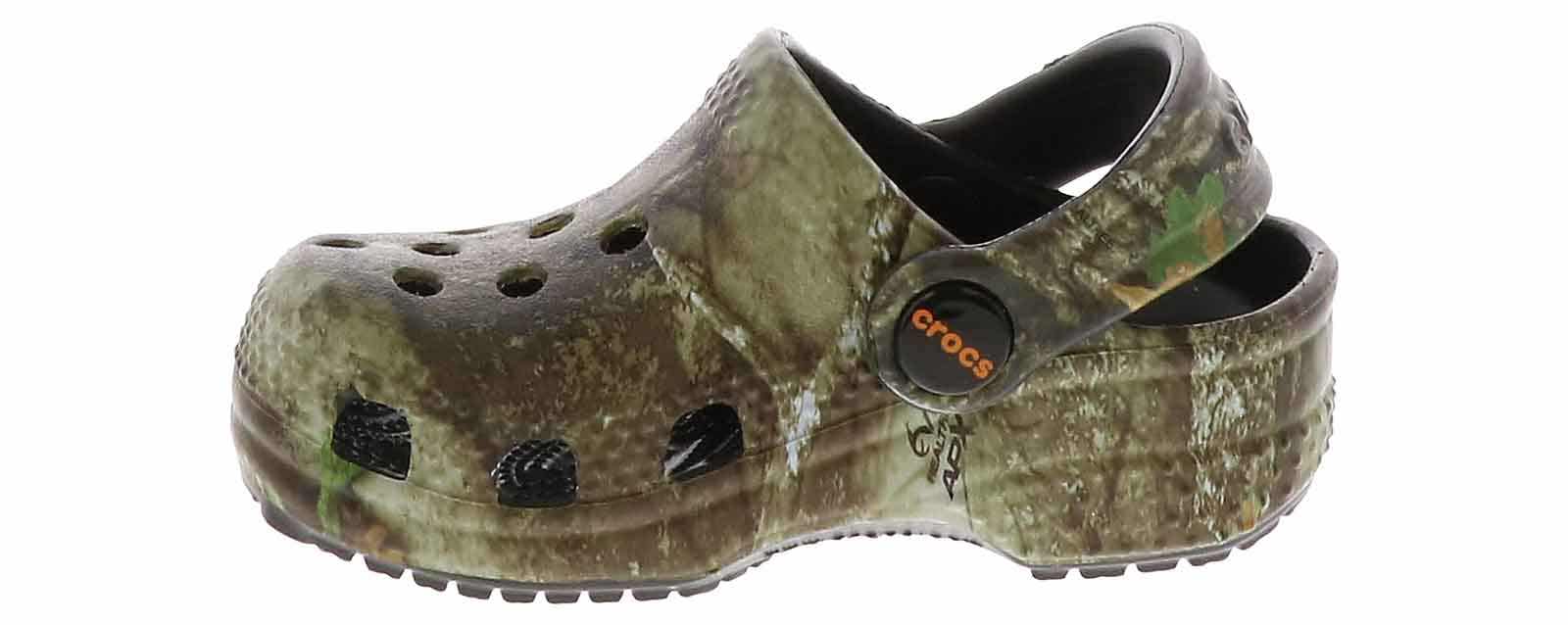 Easy on, easy off! Just like the adult Classic, the Crocs Littles Realtree APX Infant Kids’ (2-3) Clog offers amazing comfort and support, thanks to the light, durable Crosslite material and molded design. Your little one can customize their Crocs clog however they like; ventilation holes accommodate Jibbitz brand charms.