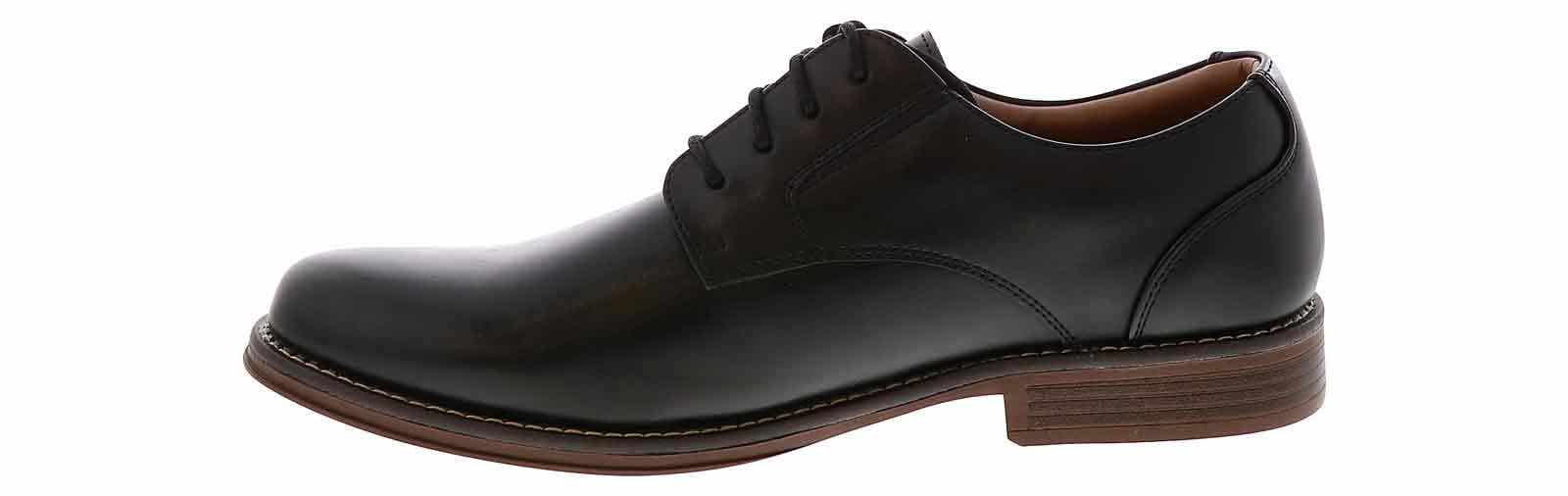 Back in black with the Dockers Fairway Men’s Dress Shoe! This classic look features a synthetic leather upper and a lace-up closure. The lightweight, treaded outsole adds an extra peculiar touch. Pair the Dockers Fairway Men’s Dress Shoe with your next business casual outfit!