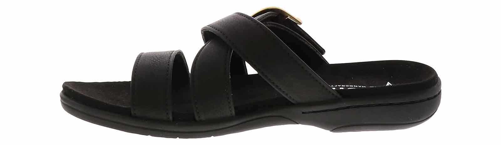Step into timeless style and boundless comfort wearing the Eastland Sanibel Women’s Wide-Width Sandal. Crafted with exquisite detail, this sandal boasts an adjustable strap and buckle for a bespoke fit. Its leather/suede upper, paired with a micro-suede/cotton blend lining, ensures barefoot bliss. Enjoy all-day support on the contoured cushioned footbed. Finished with a light, flexible rubber outsole for unmatched comfort and durability.
