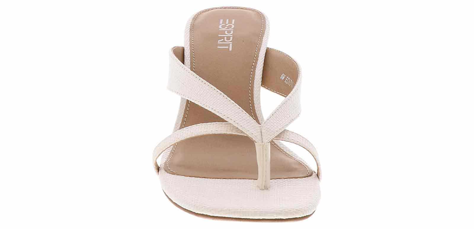 Elevate your look with the Esprit Echo Raffia Women’s Dress Sandal. The stylish thong double strap design adds a touch of elegance, while the 2.25-inch heel gives you a boost of height. Perfect for any occasion, these sandals offer both style and comfort with a cushioned insole for all-day wear. Slip the Esprit Echo Raffia Women’s Dress Sandal on and step out in confidence!