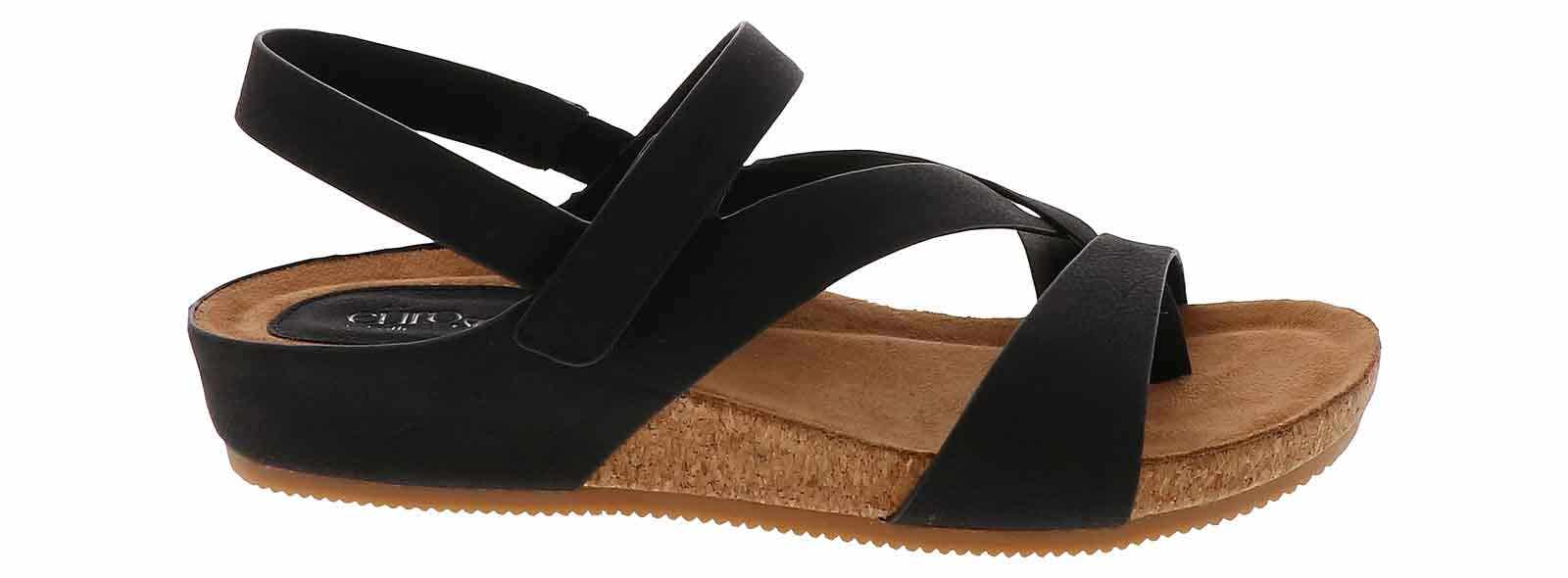 Lunch with friends or a weekend summer getaway, you can always count on the Euro Soft by Sofft Gianetta Women’s Comfort Wedge Sandal in Black. This strappy sandal with its asymmetrical upper detailing, contoured cushioned footbed and traction outsole keeps you comfortable on your feet all-day long. Upgrade your warm weather looks with the best-selling Euro Soft by Sofft GianettaWomen’s Comfort Wedge Sandal in Black.