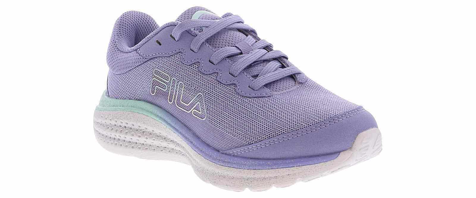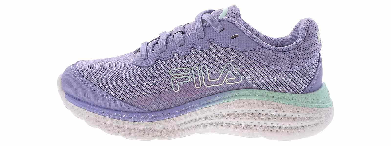 Add a comfortable new pair of kicks to her wardrobe with the Fila Kinnect Glitter Youth Girls’ (11-3) Running Shoe! This athletic style has a mesh upper with durable synthetic overlays and an adjustable lace up closure for added support. The cushioned insole delivers padding in each step, while the rubber outsole will keep her feet protected on soft and hard surfaces. Wherever she goes, keep her safe with the Fila Kinnect Glitter Youth Girls’ (11-3) Running Shoe!