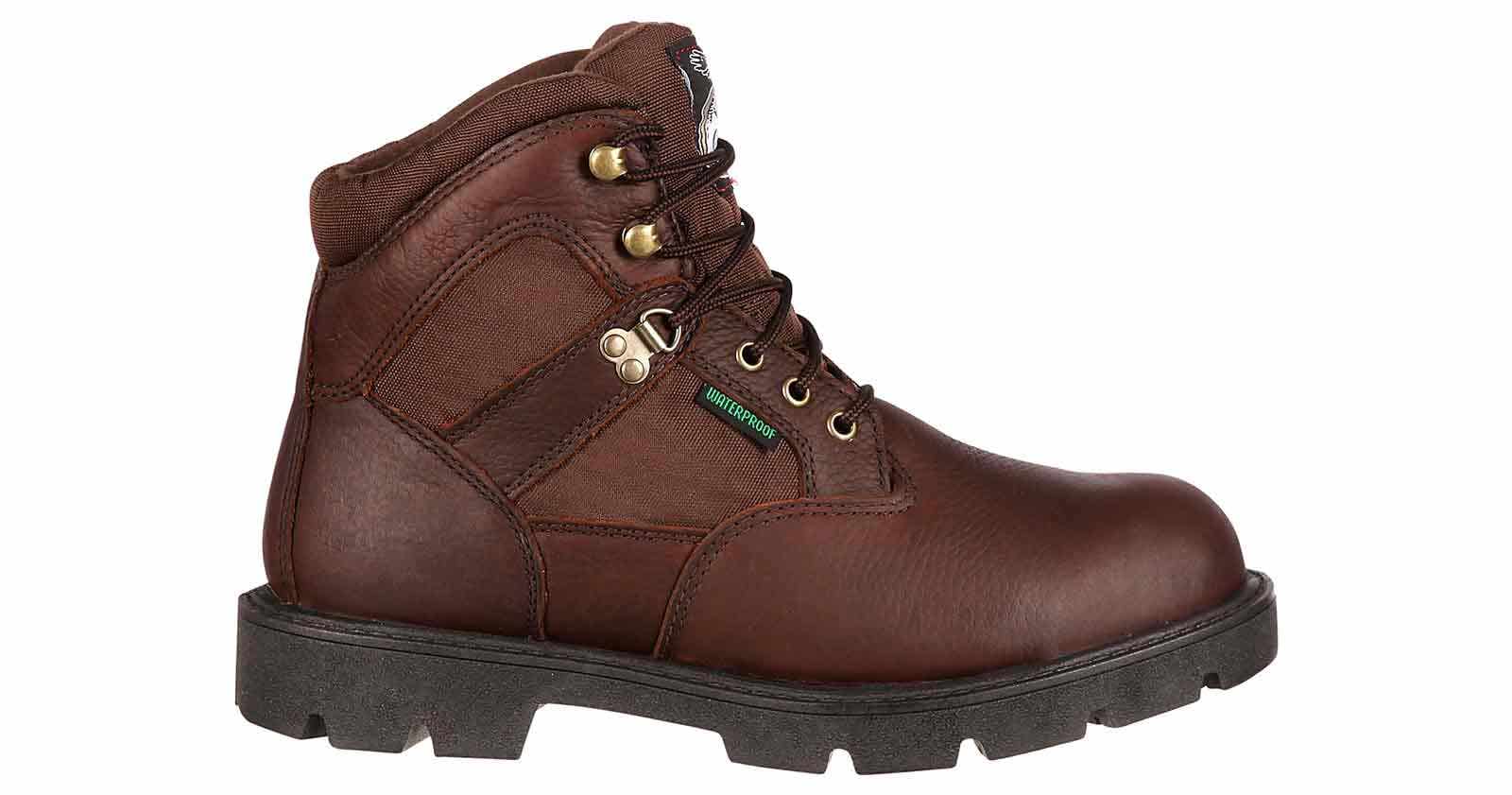 This Georgia Boots Homeland 6-Inch Men’s Steel Toe Work Boot has protective toe guards to help your toes against things that could fall on them. It also meets the electrical hazard standard and is waterproof to keep you dry. These boots have an arch support and a polyurethane insole. Made of full-grain waterproof leather, this boot has a slip and oil resistant outsole. Embrace your style with the Georgia Boots Homeland 6-Inch Men’s Steel Toe Work Boot!