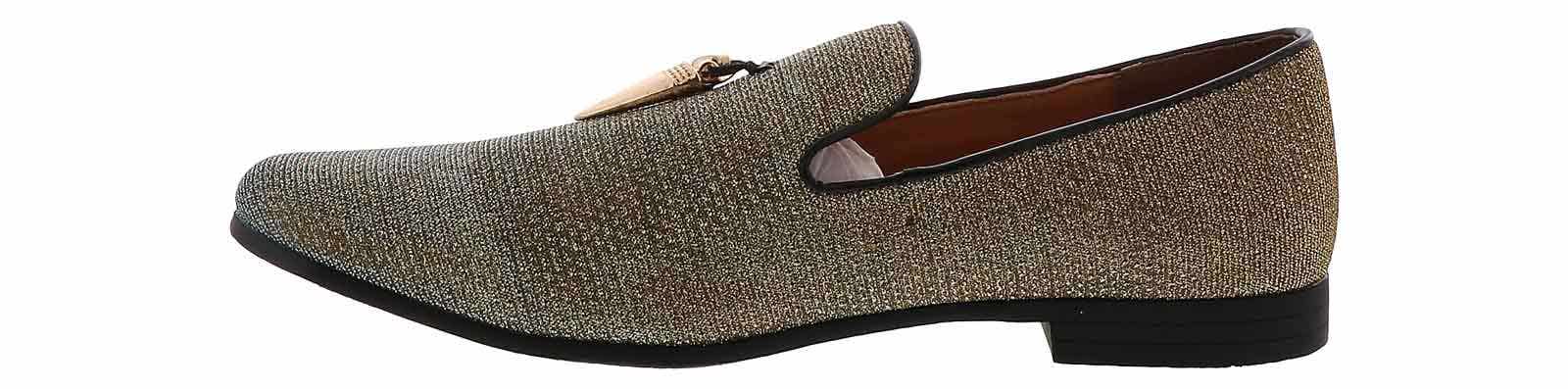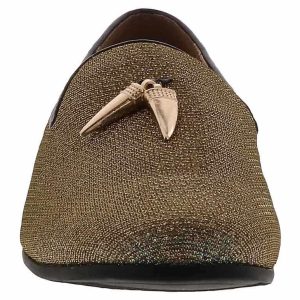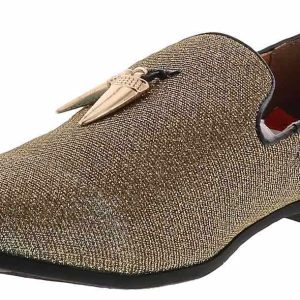 Step out in a unique and flashy style with the Giorgio Brutini Collide Gold Smoker Men’s Fashion Shoe! This sparkly gold slip-on features gold charm details and a cushioned insole with a memory foam heel. The Giorgio Brutini Collide Gold Smoker Men’s Fashion Shoe will make you shine in every room!