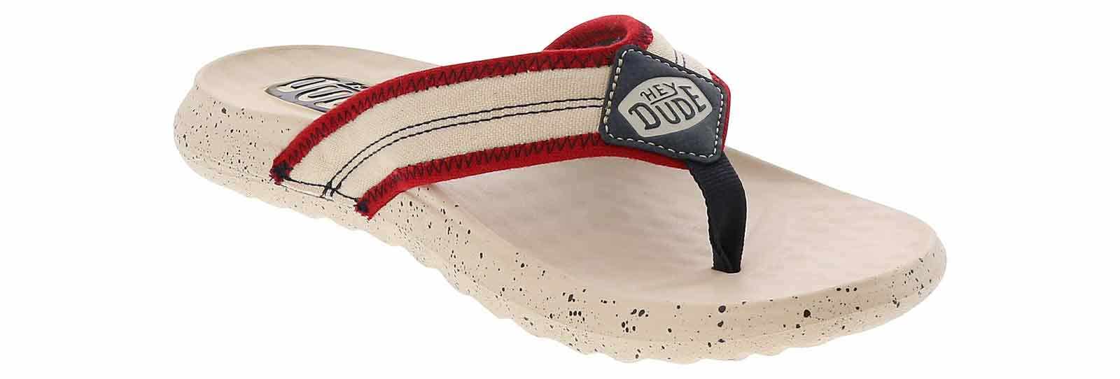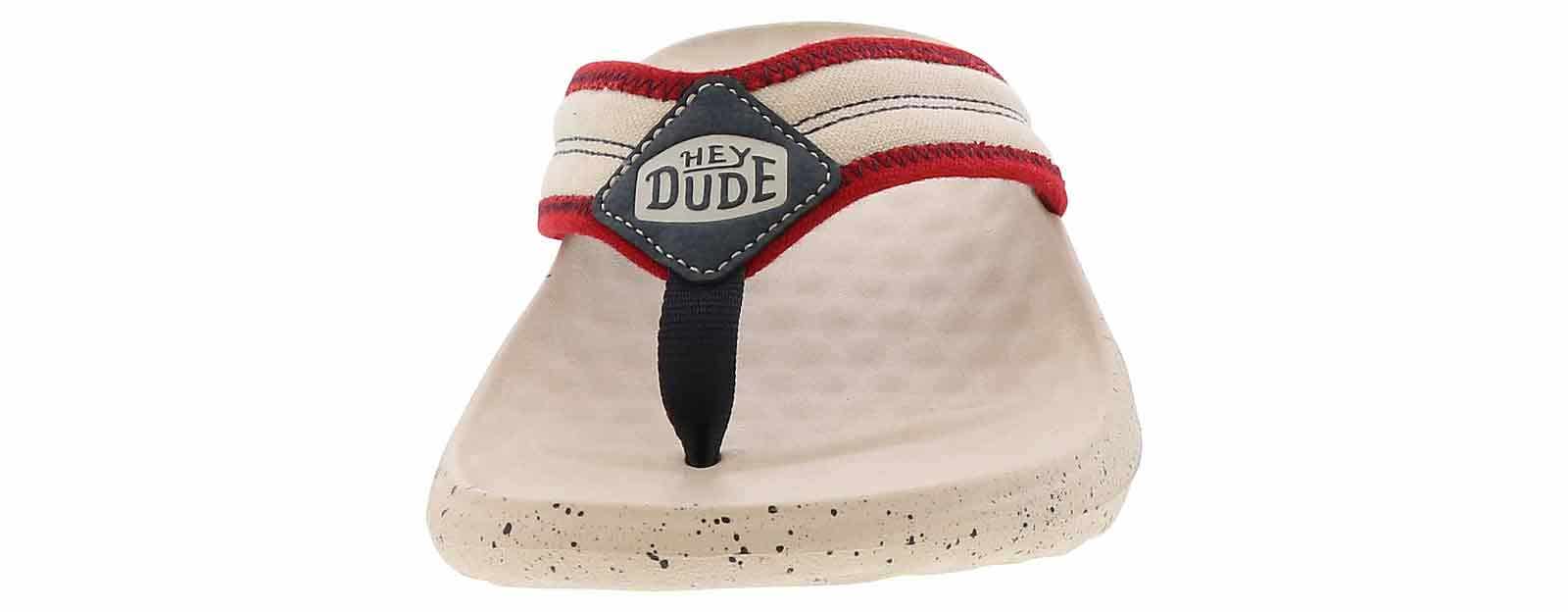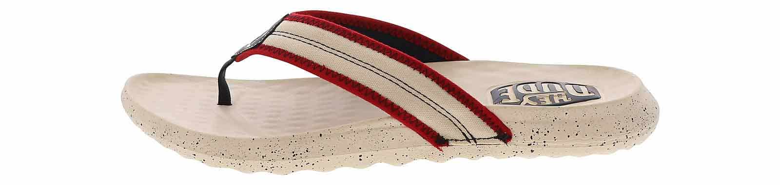 Elevate your summer look with the HEYDUDE Myers Americana White Red Men’s Thong Sandal! This sandal features a sleek and stylish design, with soft fabric upper straps and a durable, lightweight outsole that provides reliable traction. An easy slip-on closure ensures you a quick ability to get out the door, while the cushioned footbed makes every one of your steps comfortable. The HEYDUDE Myers Americana White Red Men’s Thong Sandal is an exceptional style for every fashion-conscious man!