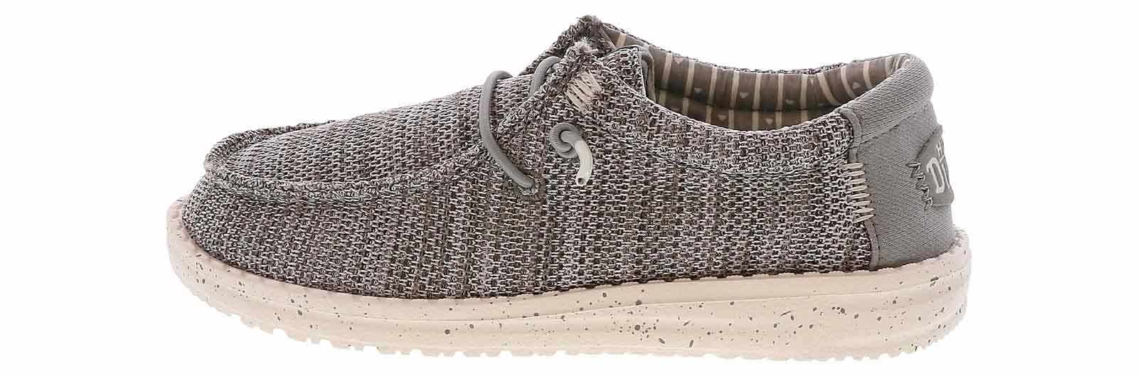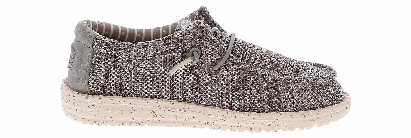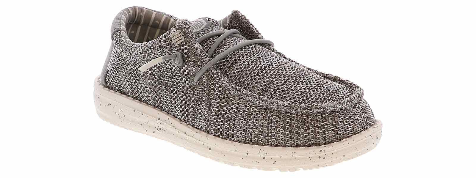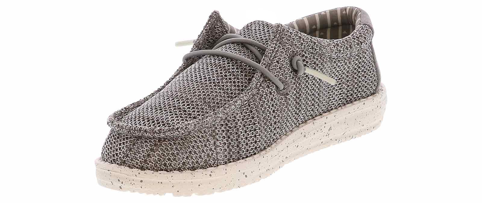 He will step with confidence in the HEYDUDE Wally Stretch Mesh Youth Boys’ (11-7) Casual Shoe! This slip-on shoe features elastic laces for a secure fit. The cushioned insole and lightweight outsole will keep him comfortable all day. He will love the HEYDUDE Wally Stretch Mesh Youth Boys’ (11-7) Casual Shoe!