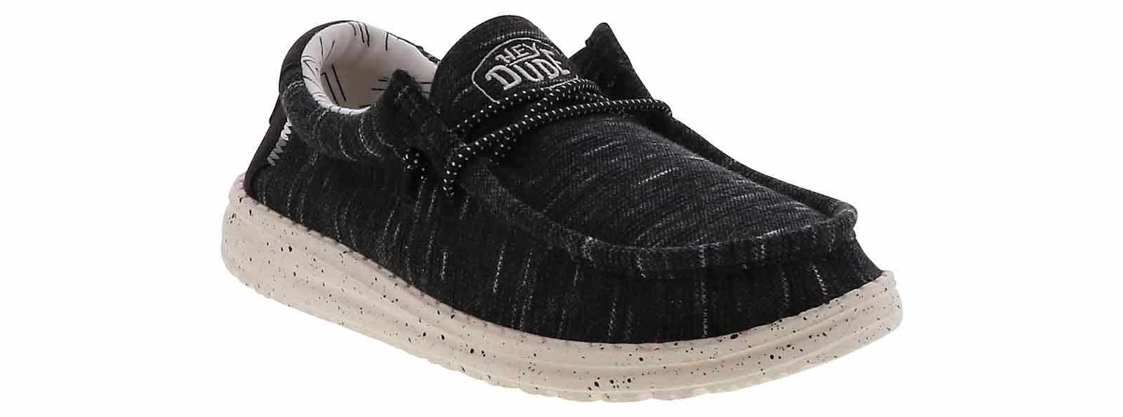He will love the HEYDUDE Wally Stretch Youth Boys’ (1-6) Casual Shoe! This slip-on style is perfect for your busy little boy. The cushioned insole provides support, while the lightweight outsole provides traction and stability. He will be comfortable playing all day in the HEYDUDE Wally Stretch Youth Boys’ (1-6) Casual Shoe!