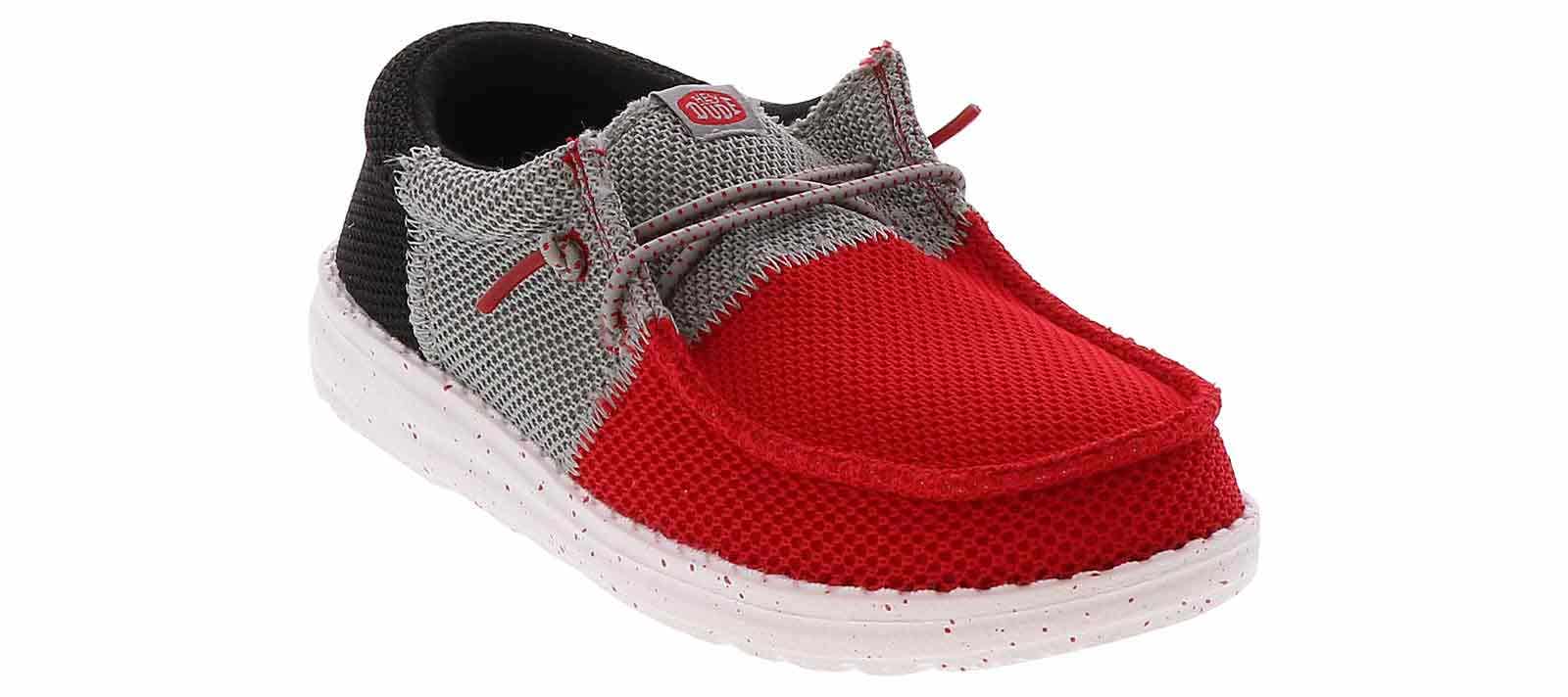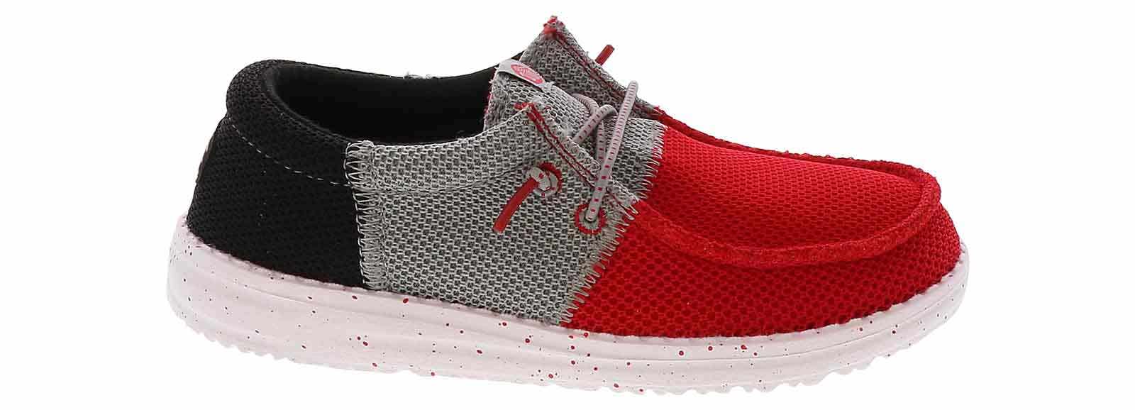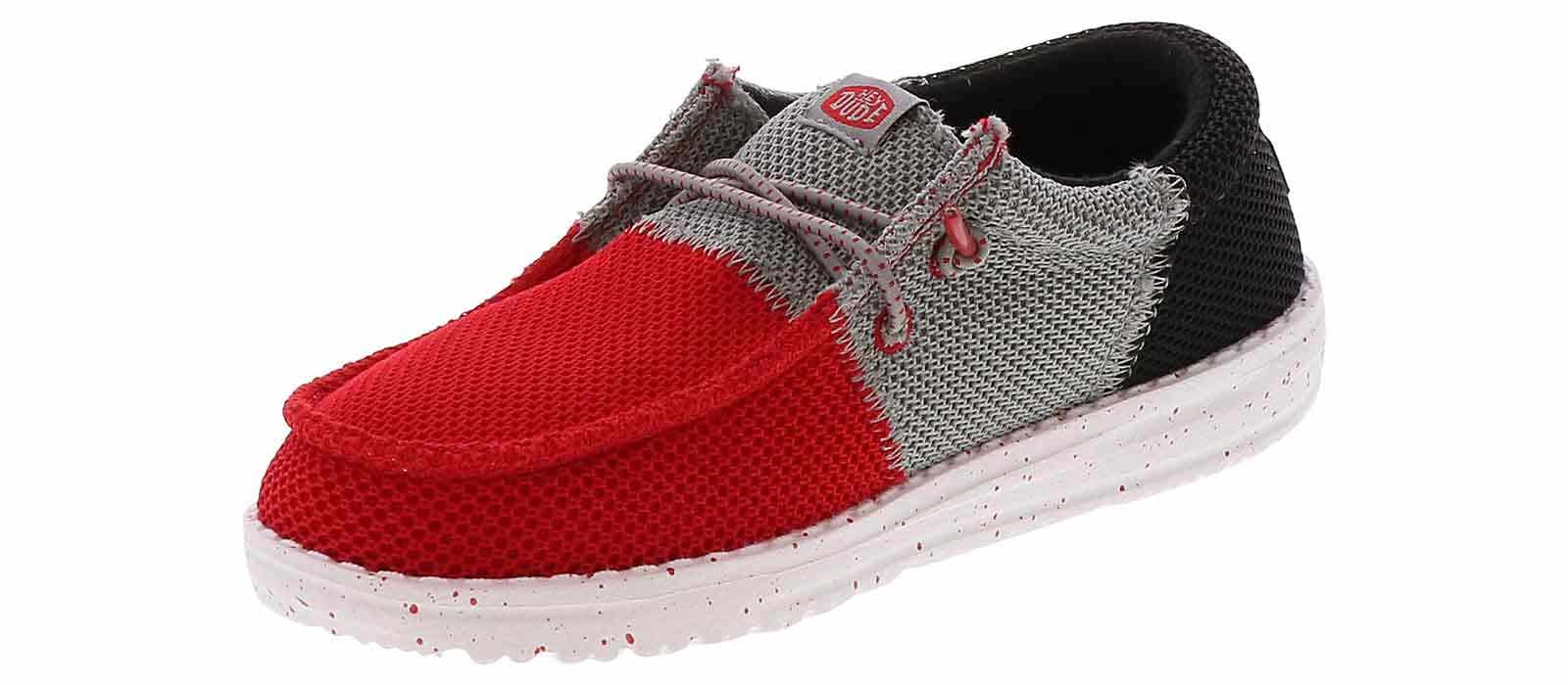 He will step with confidence in the HEYDUDE Wally Tri Varsity Mesh Youth Boys’ (11-3) Casual Shoe! This slip-on shoe features elastic laces to give him an extra secure fit. The cushioned insole and lightweight outsole will keep him supported throughout the day. Let him embrace comfort with the HEYDUDE Wally Tri Varsity Mesh Youth Boys’ (11-3) Casual Shoe!