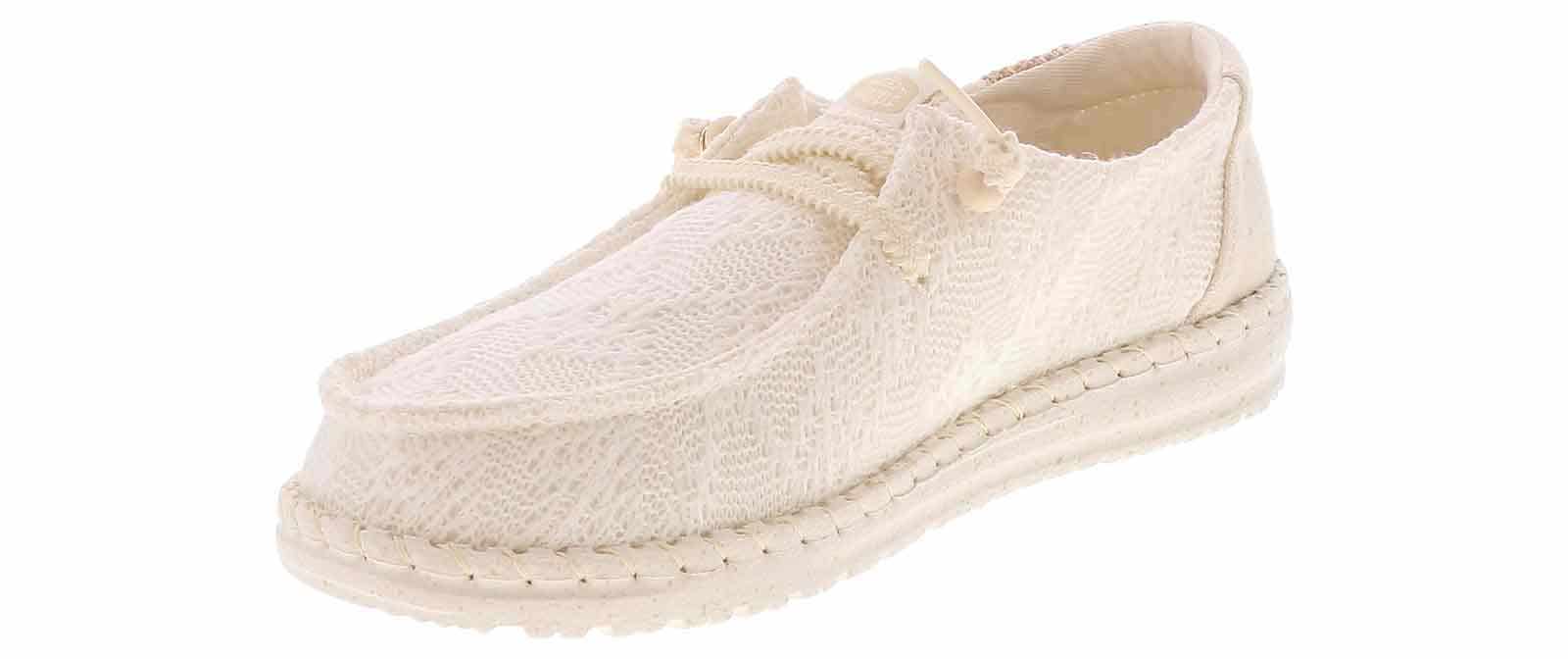 Look cute and casual with the HEYDUDE Wendy Boho Knit Women’s Casual Shoe! The canvas upper is covered with a chrochet design that will keep you looking fashionable for everyday wear. The insole is cushioned for your comfort and the lightweight outsole provides traction. You will love the way you look and feel in this HEYDUDE Wendy Boho Knit Women’s Casual Shoe!