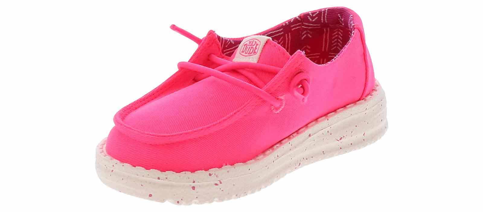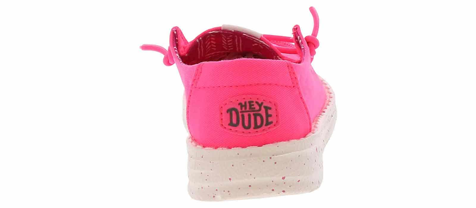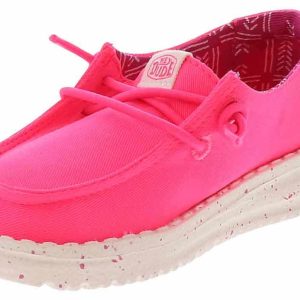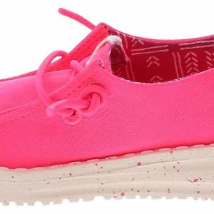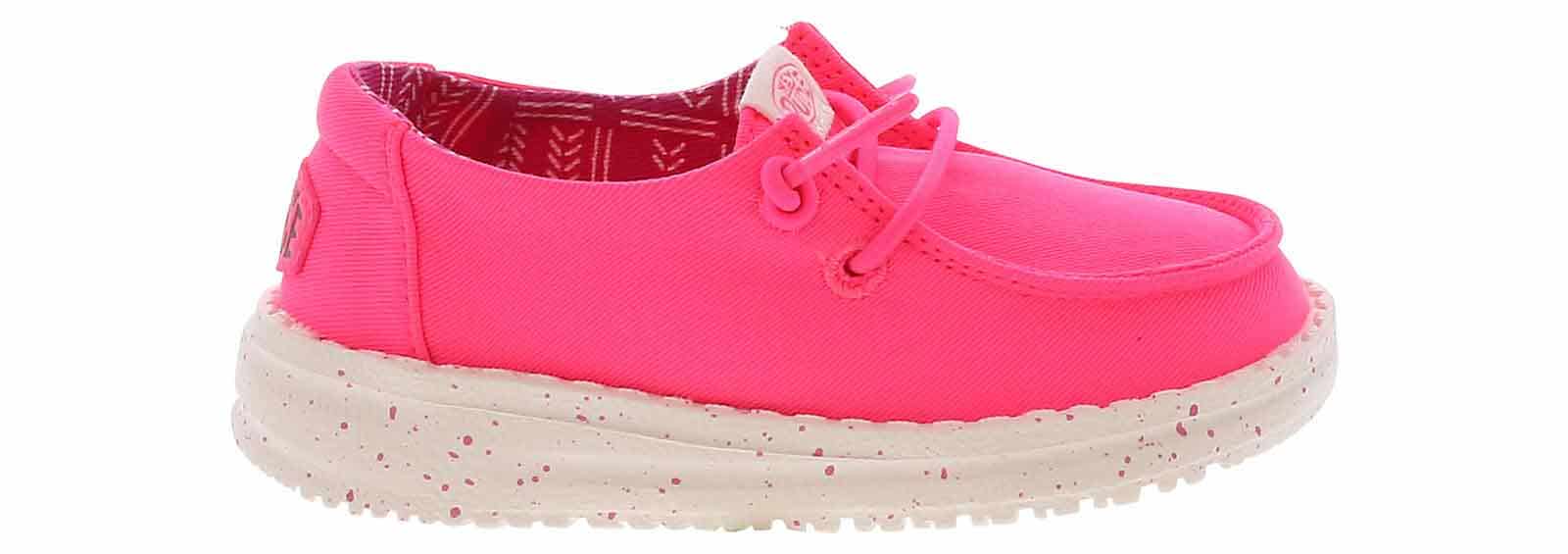 Step into a world of comfort and charm with this delightful HEYDUDE Wendy Canvas Pink Toddler Girls’ (7-10) Casual Shoe! This pink solid shoe features a convenient slip-on closure with customizable no-tie elastic laces. The cushioned insole and lightweight outsole make this platform shoe a comfortable choice. Spruce up your casual attire in style with the HEYDUDE Wendy Canvas Pink Toddler Girls’ (7-10) Casual Shoe!
