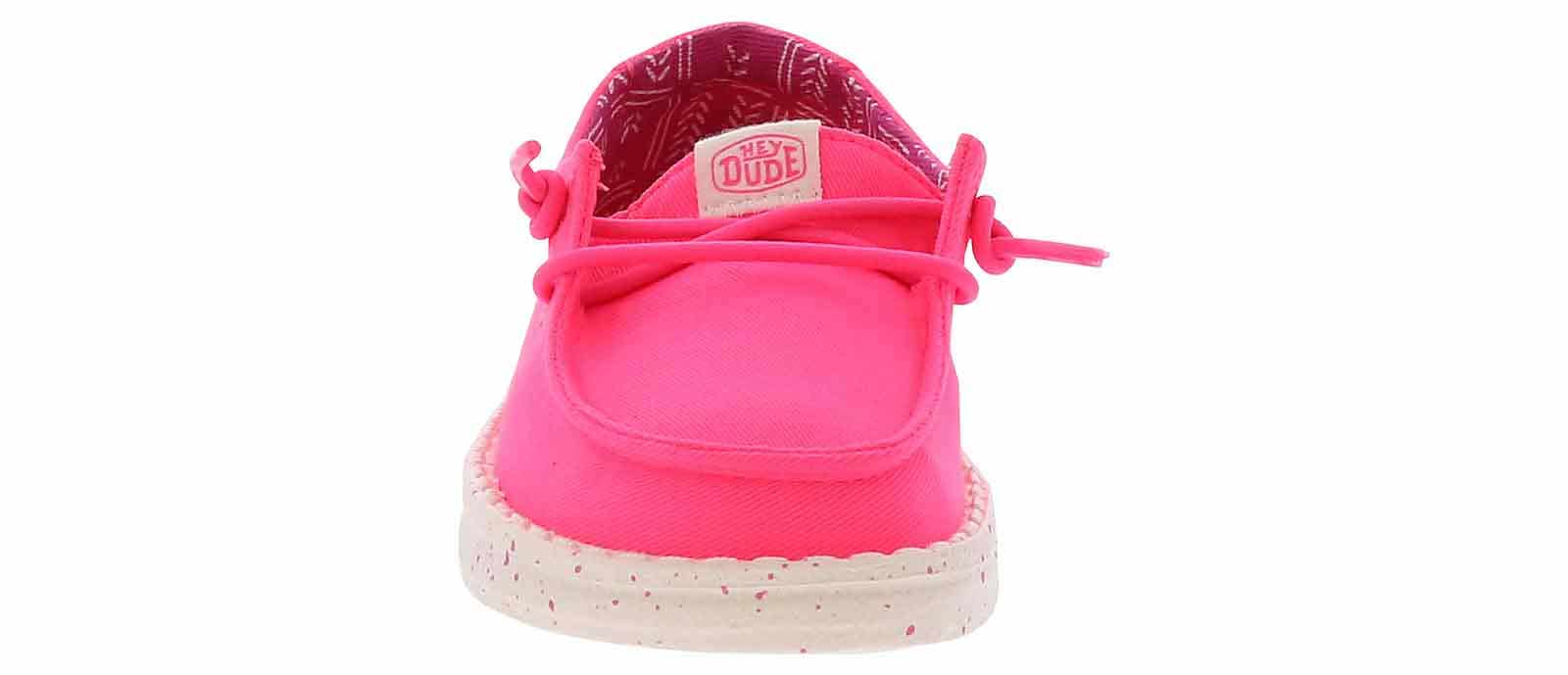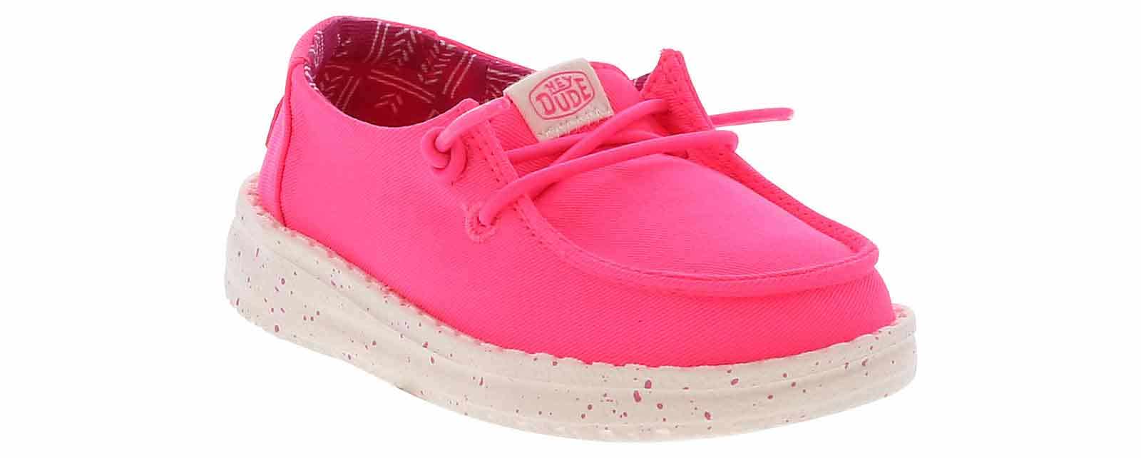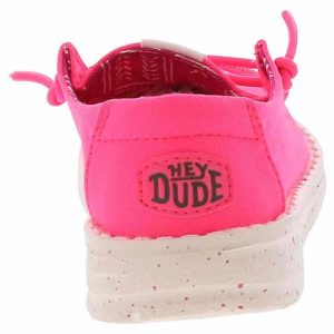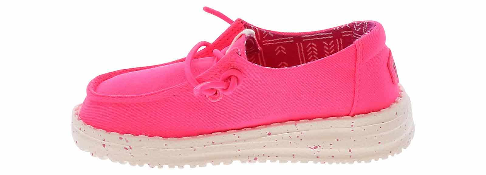 Step into a world of comfort and charm with this delightful HEYDUDE Wendy Canvas Pink Toddler Girls’ (7-10) Casual Shoe! This pink solid shoe features a convenient slip-on closure with customizable no-tie elastic laces. The cushioned insole and lightweight outsole make this platform shoe a comfortable choice. Spruce up your casual attire in style with the HEYDUDE Wendy Canvas Pink Toddler Girls’ (7-10) Casual Shoe!