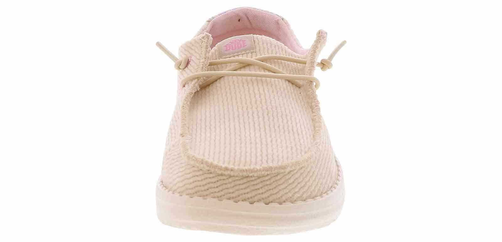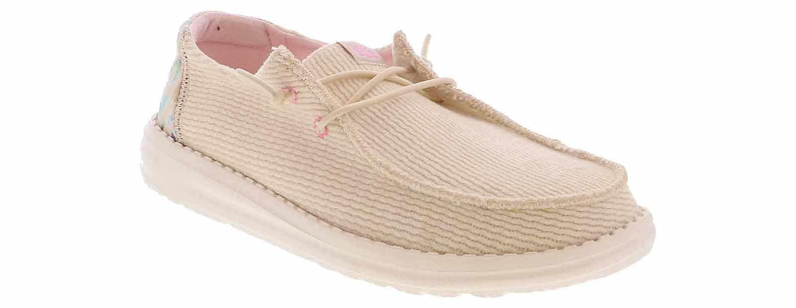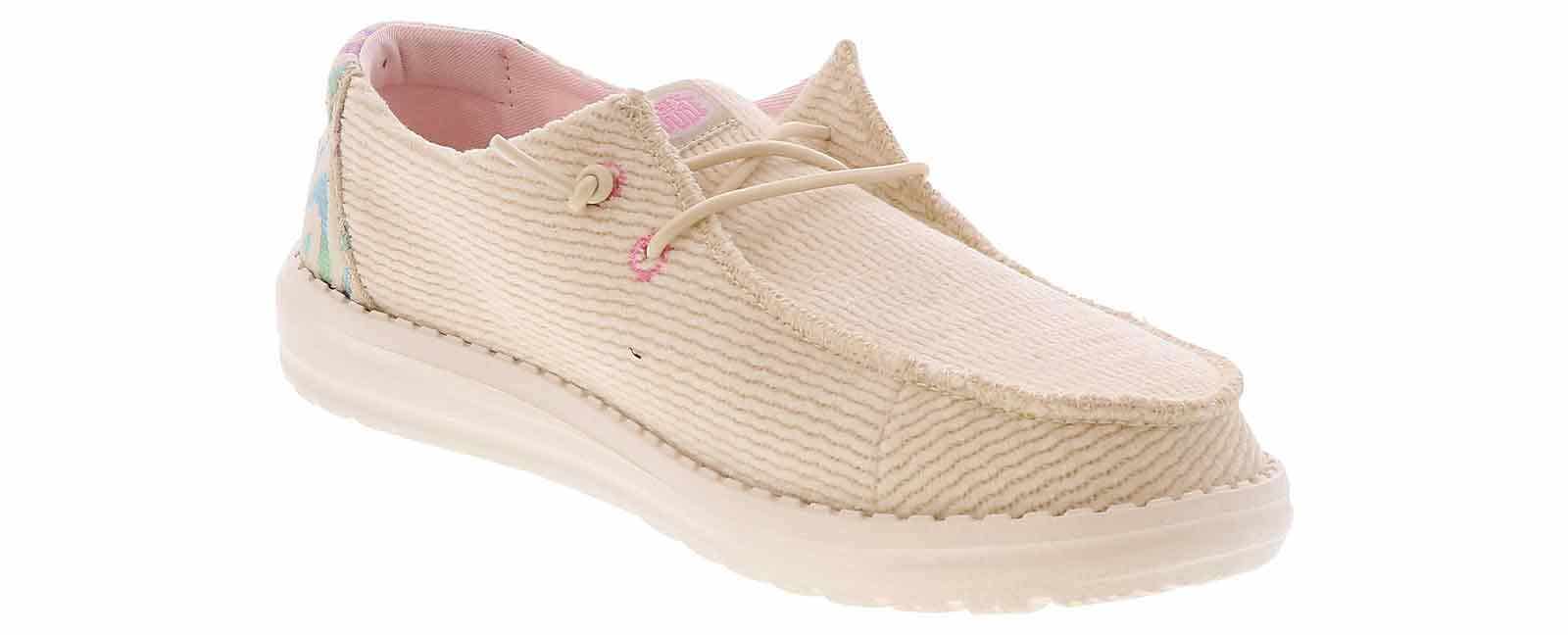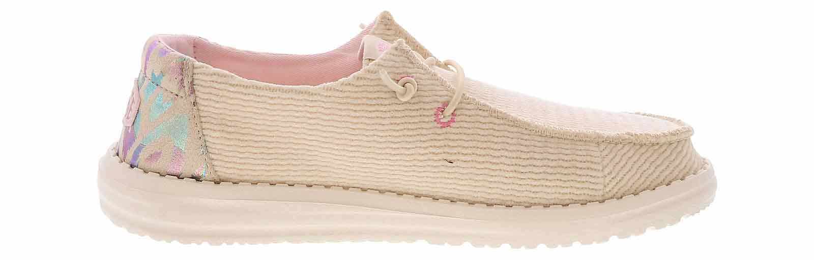 Discover unlimited comfort with the HEYDUDE Wendy Cord Leo Women’s Casual Shoe! This slip-on shoe has elastic laces to secure your foot throughout the day. The cushioned insole and lightweight outsole will provide support and comfort. Elevate your shoe collection with the HEYDUDE Wendy Cord Leo Women’s Casual Shoe!