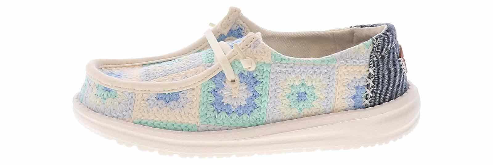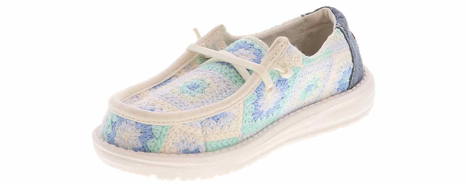 Your little one will look cute and casual with the HEYDUDE Wendy Cottage Crotchet Youth Girls’ (11-3) Casual Shoe! The canvas upper is covered with a crochet design that will keep her looking fashionable for school or play dates. The insole is cushioned for her comfort and the lightweight outsole provides traction. She will love the way she looks and feels in the HEYDUDE Wendy Cottage Crotchet Youth Girls’ (11-3) Casual Shoe!
