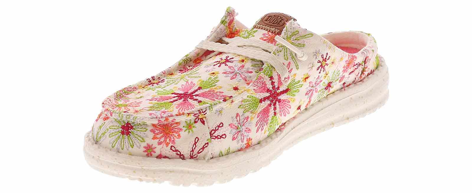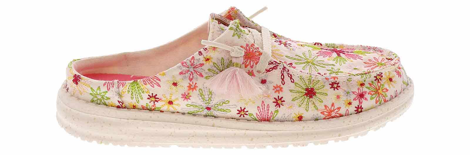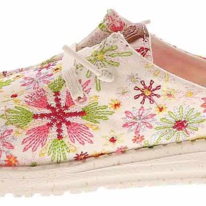 Slip on the HEYDUDE Wendy Slip Embroidered Floral Women’s Casual Shoe! The combination of the canvas upper, removable cushioned insole, and durable outsole creates a comfortable experience like no other. The HEYDUDE Wendy Slip Embroidered Floral Women’s Casual Shoe makes casual cute and fun for summer!