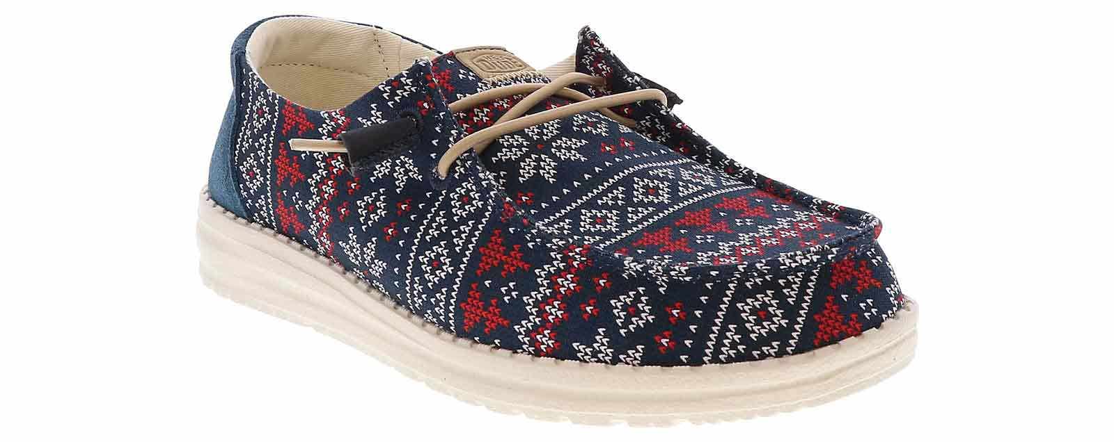 Watch them celebrate the season with the HEYDUDE Wendy Ugly Sweater Women’s Casual Shoe! This fun Christmas-inspired design features an ugly sweater pattern, allowing them to stand out at every contest. The slip-on closure and lightweight design ensure ease and breathability, while the no-tie elastic laces allow a customizable fit. Make the holidays more fun with the HEYDUDE Wendy Ugly Sweater Women’s Casual Shoee!