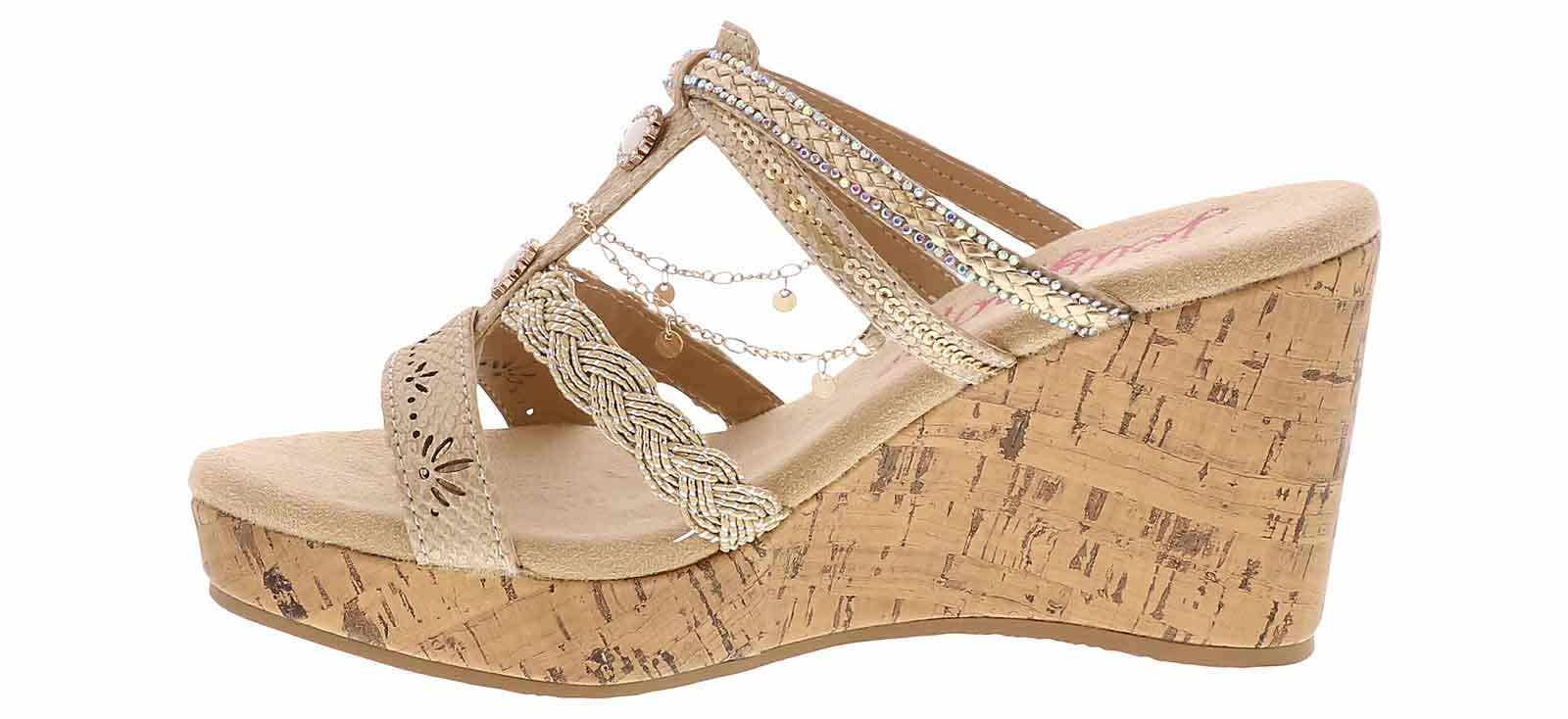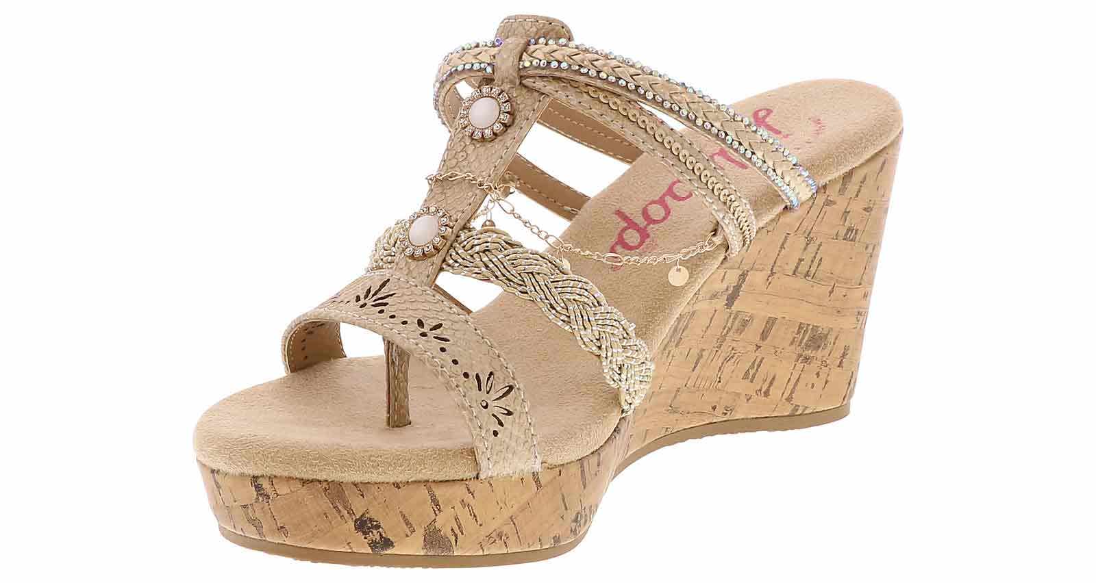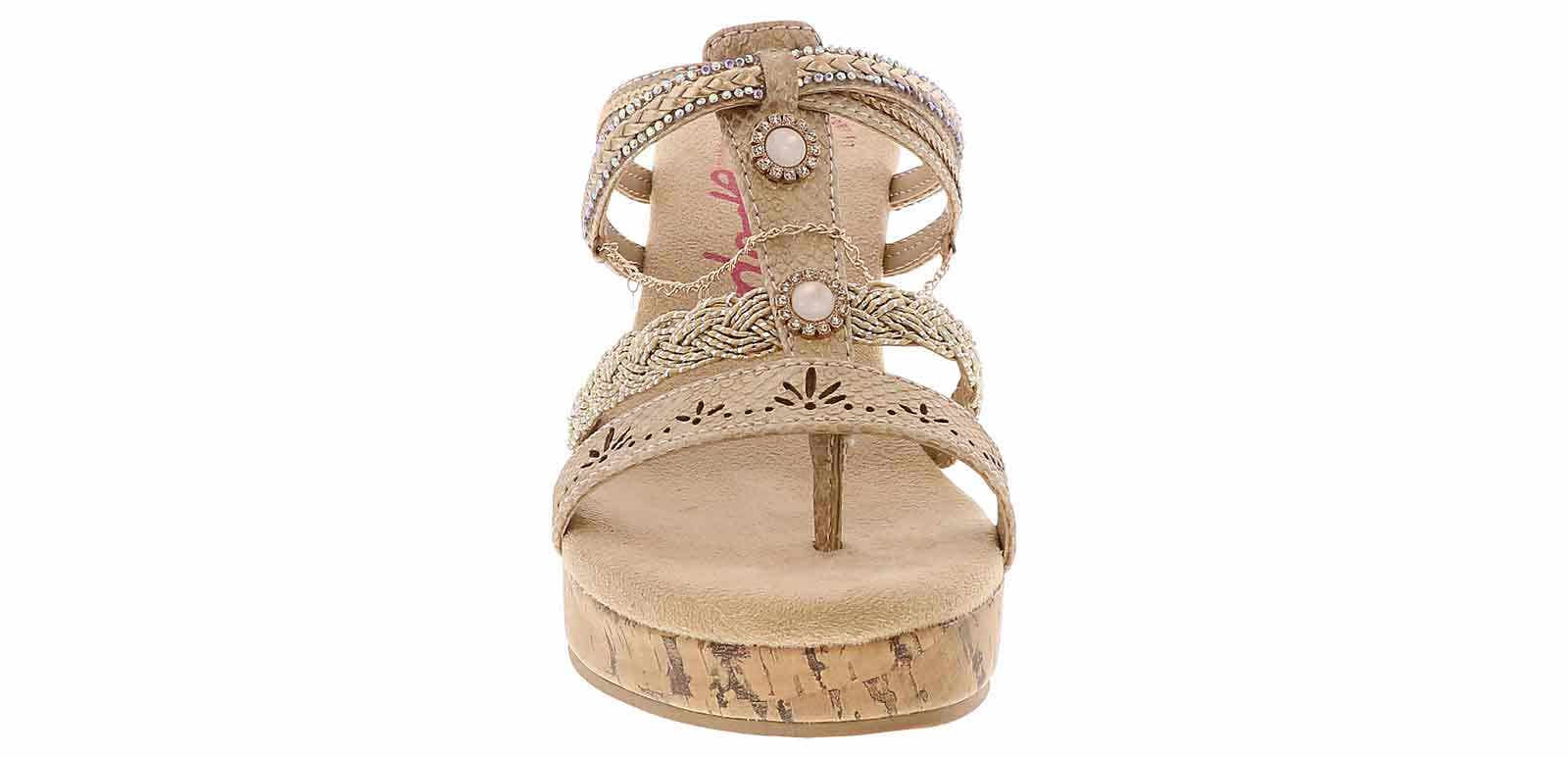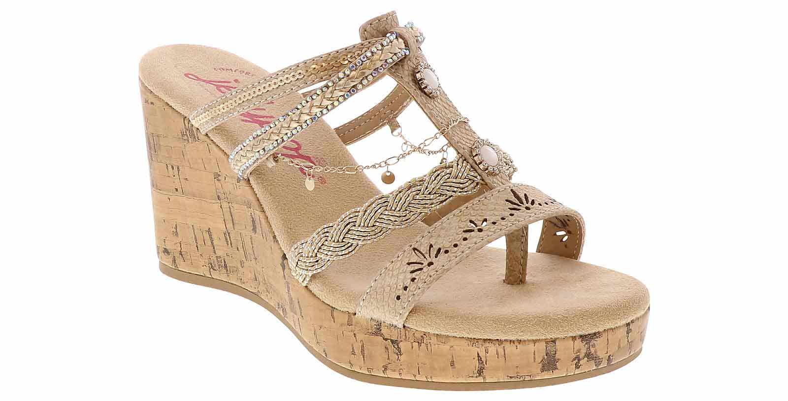Introducing the Jellypop Amelina Women’s Wedge Sandal, a perfect fusion of style and comfort. These slender sandals feature stunning bejeweled straps that add a touch of sparkle elevating any outfit with ease. The comfort-fit insole ensures a cushioned, supportive feel with every step. These Jellypop Amelina Women’s Wedge Sandal provide both glamour and all-day comfort.