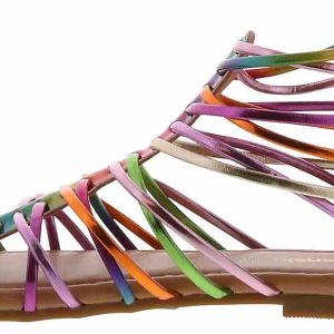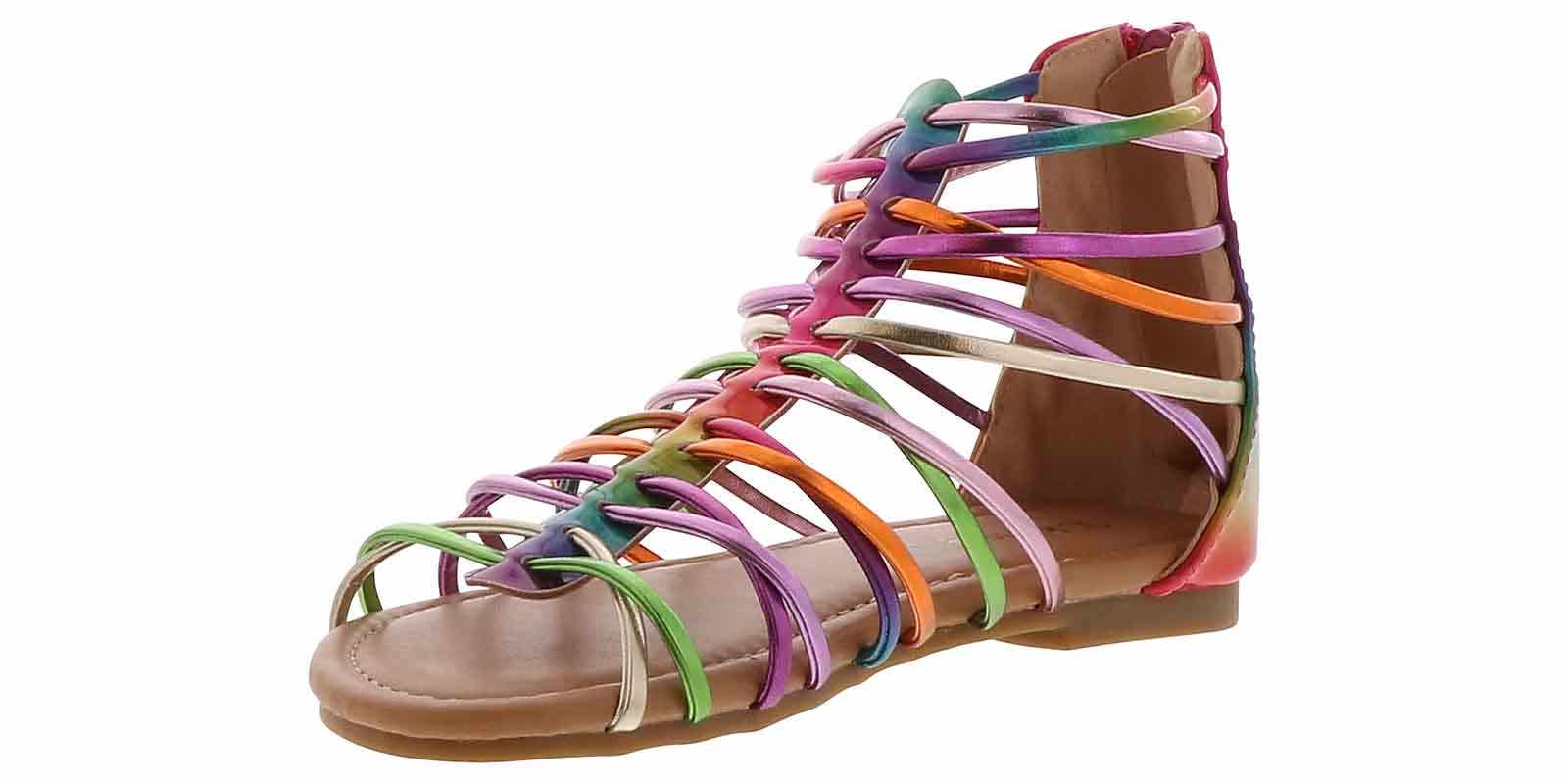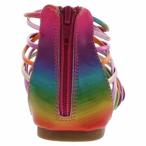 Make her days colorful with the Kensie Girl Rainbow Gladiator Youth Girls’ (11-4) Sandal! This flat sandal features a zipper closure and a comfortable footbed that provide security and cushion. The shiny rainbow design radiates happiness when she wears the Kensie Girl Rainbow Gladiator Youth Girls’ (11-4) Sandal!