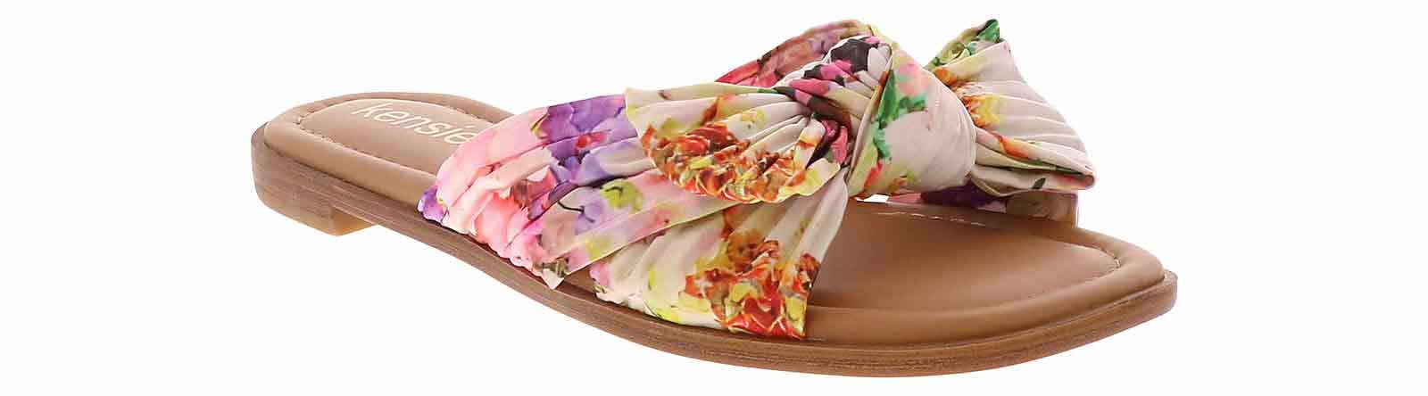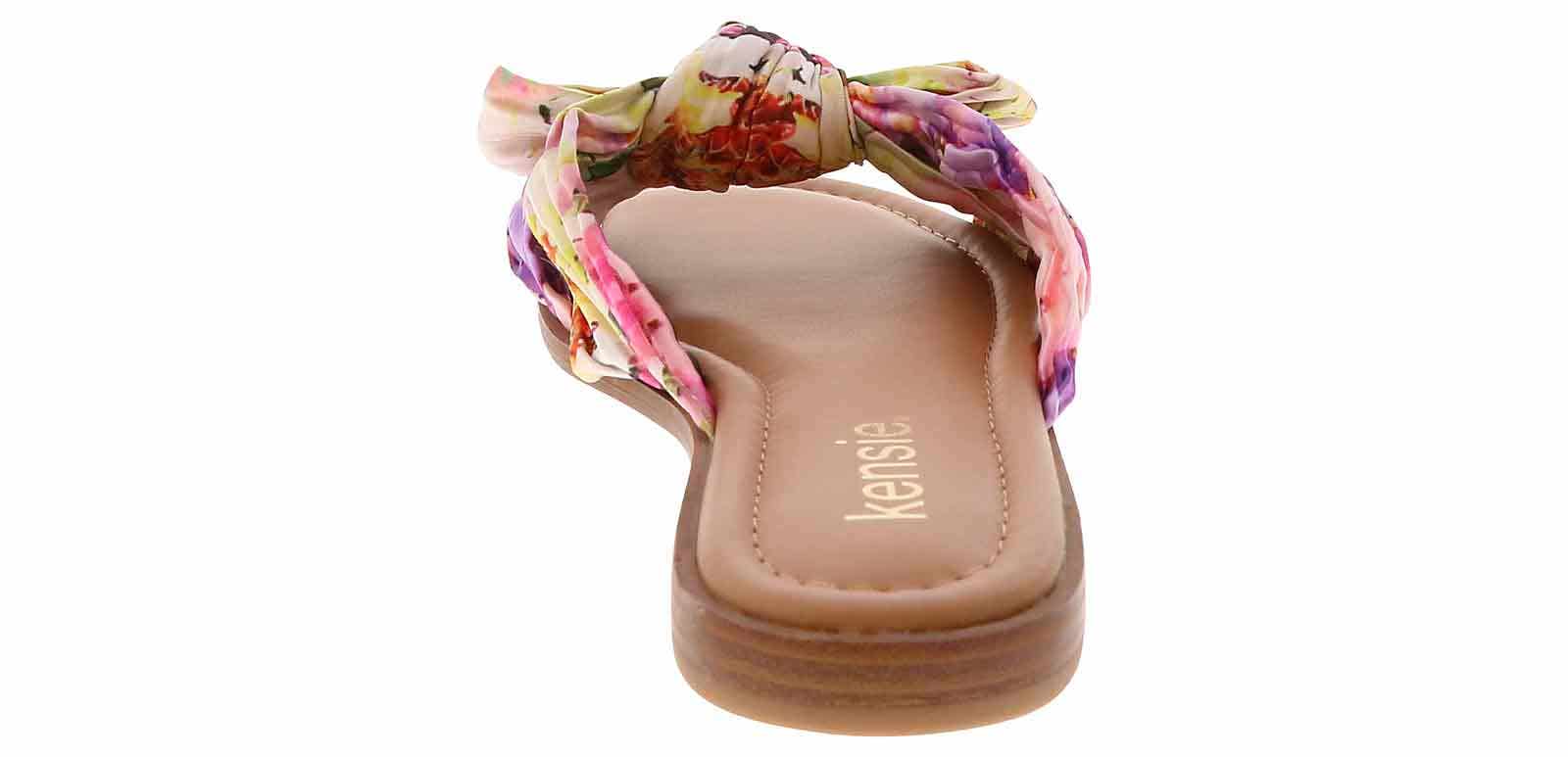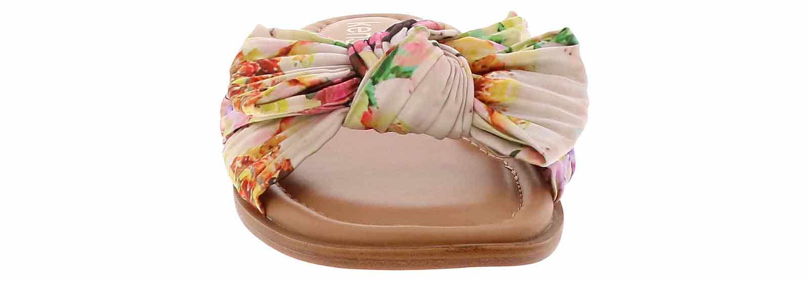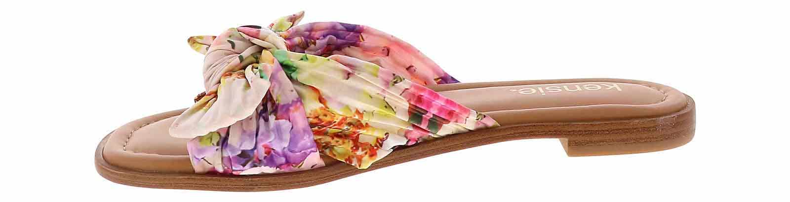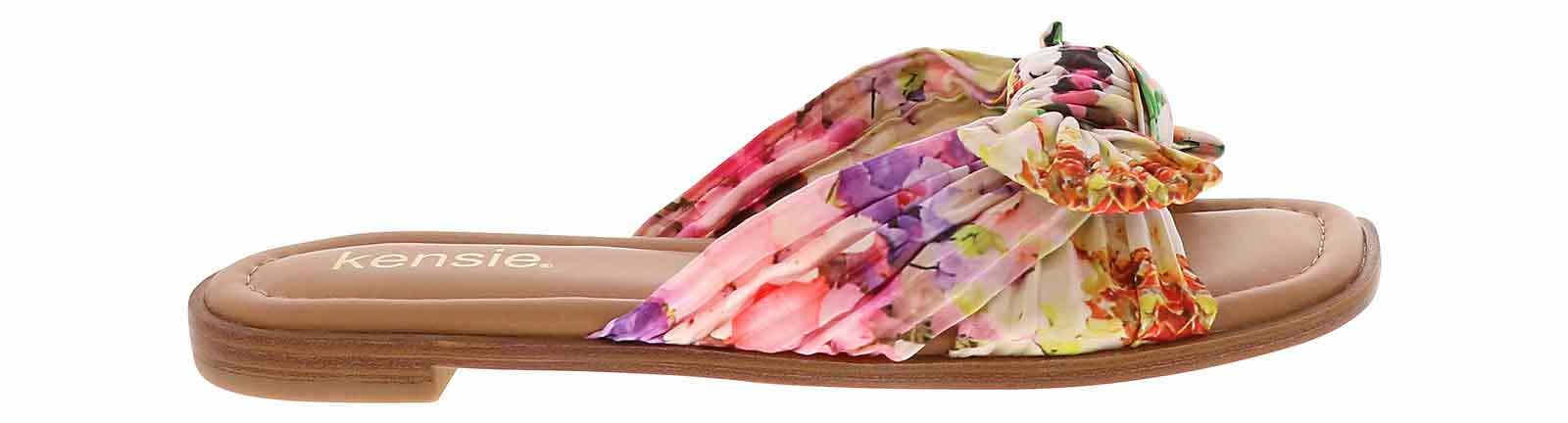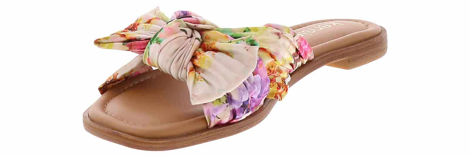 The Kensie Renta 2 Floral Tie Women’s Slide Sandal will be a closet staple this summer. Quickly slip-on these adorable sandals to head out for the day with comfort and style. Trendy details include the floral print design and knot bow, making the Kensie Renta 2 Floral Tie Women’s Slide Sandal the perfect accessory to elevate any outfit.