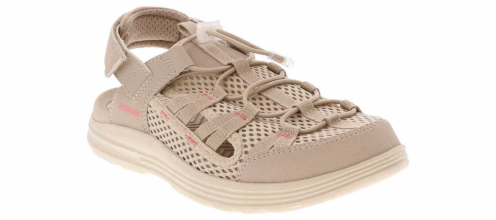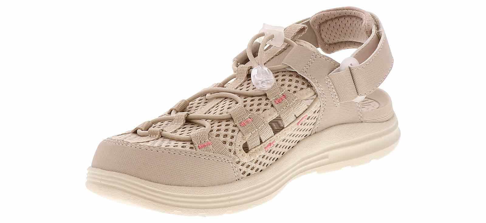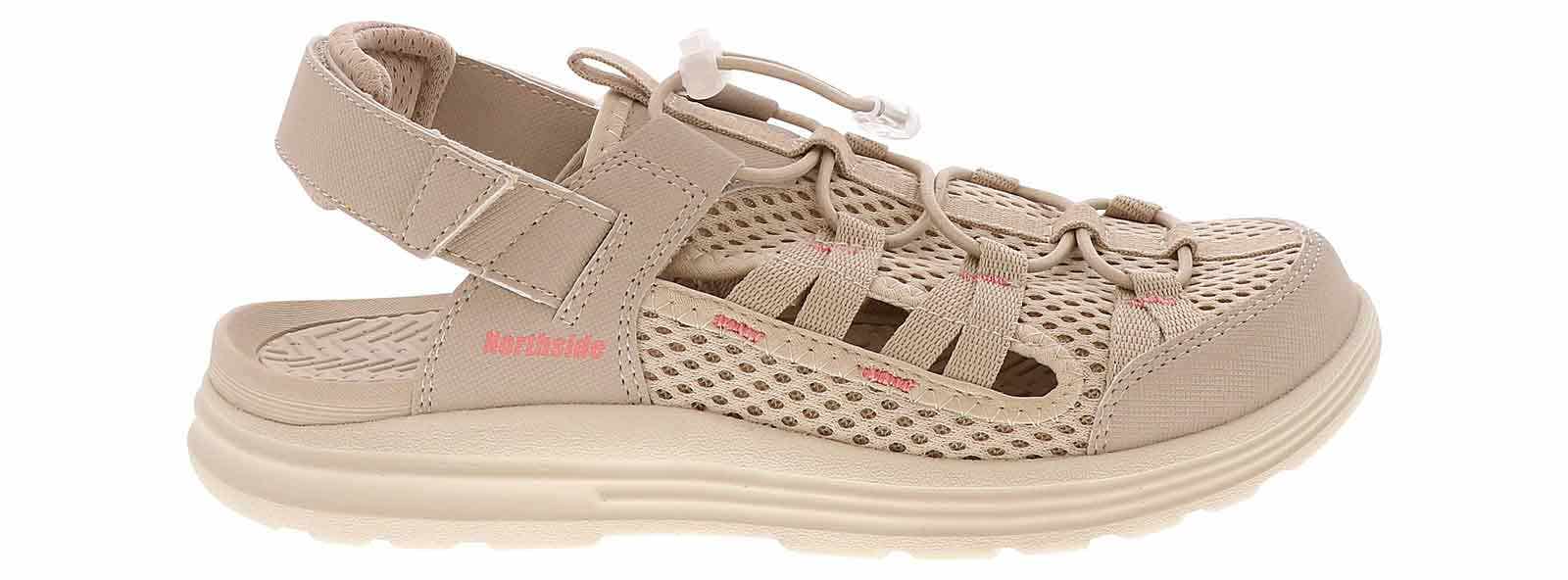 Keep your feet protected as you walk outdoors in the Northside Rio Vista Women’s Outdoor Sandal! This style has a mesh upper with adjustable elastic laces that will give you a secure feel. The side holes provide ventilation, and the hook-and-loop strap make for an easy on and off. The cushioned insole and durable outsole will keep you on the trail all day long in the Northside Rio Vista Women’s Outdoor Sandal!