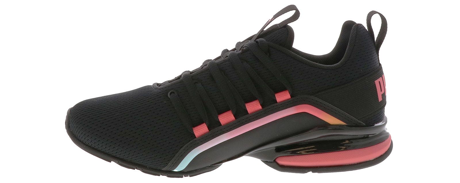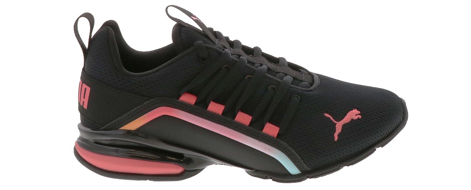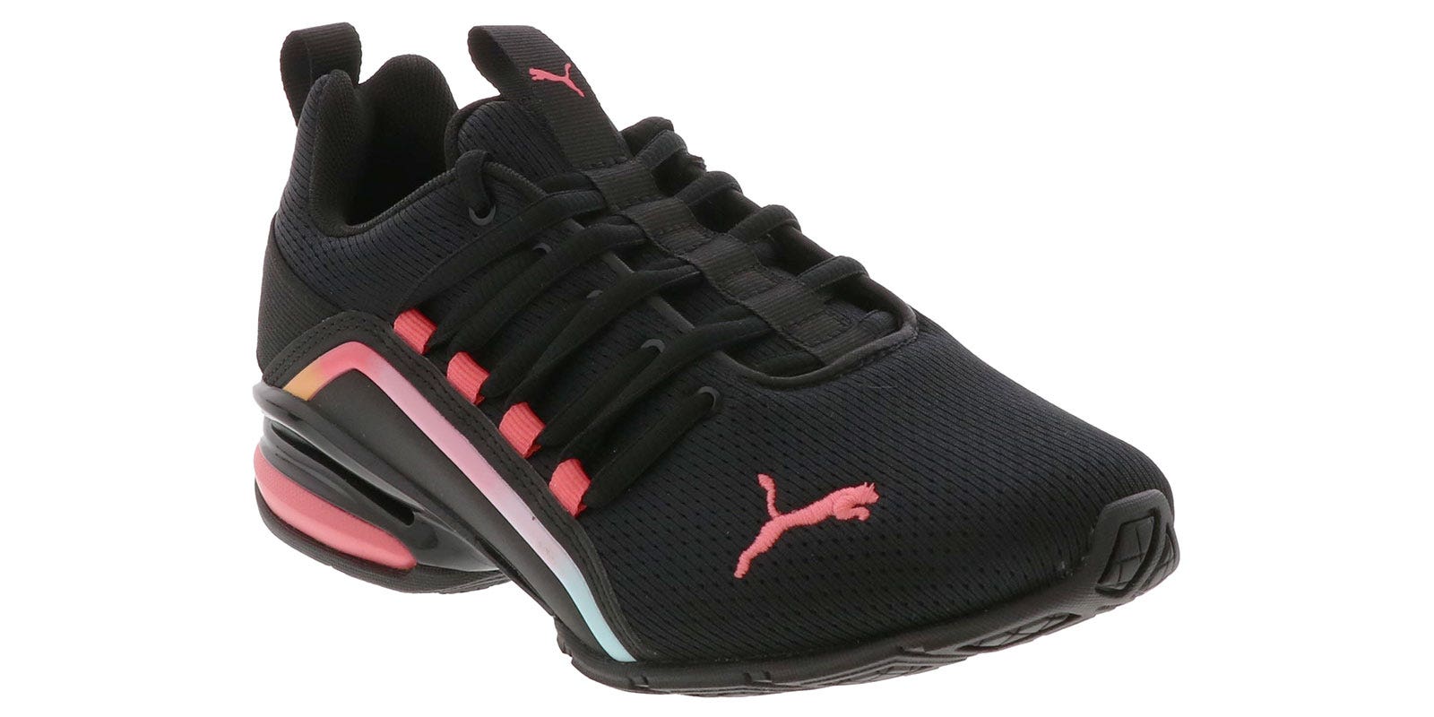 Watch her make confident strides while wearing the Puma Axelion Sunset Fade Junior Girls’ (4-7) Running Shoe! Her feet will stay cool and secure with a breathable mesh upper and lace up closure. The lightweight construction and flexible outsole enhance her natural movement, while the cushioned insole and padded collar offer responsive comfort. Add a pop of color and personality to her running gear with the Puma Axelion Sunset Fade Junior Girls’ (4-7) Running Shoe!