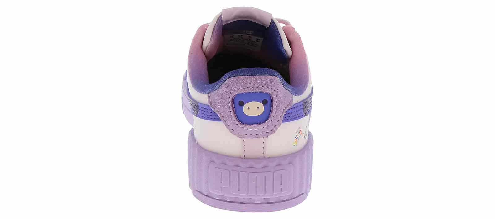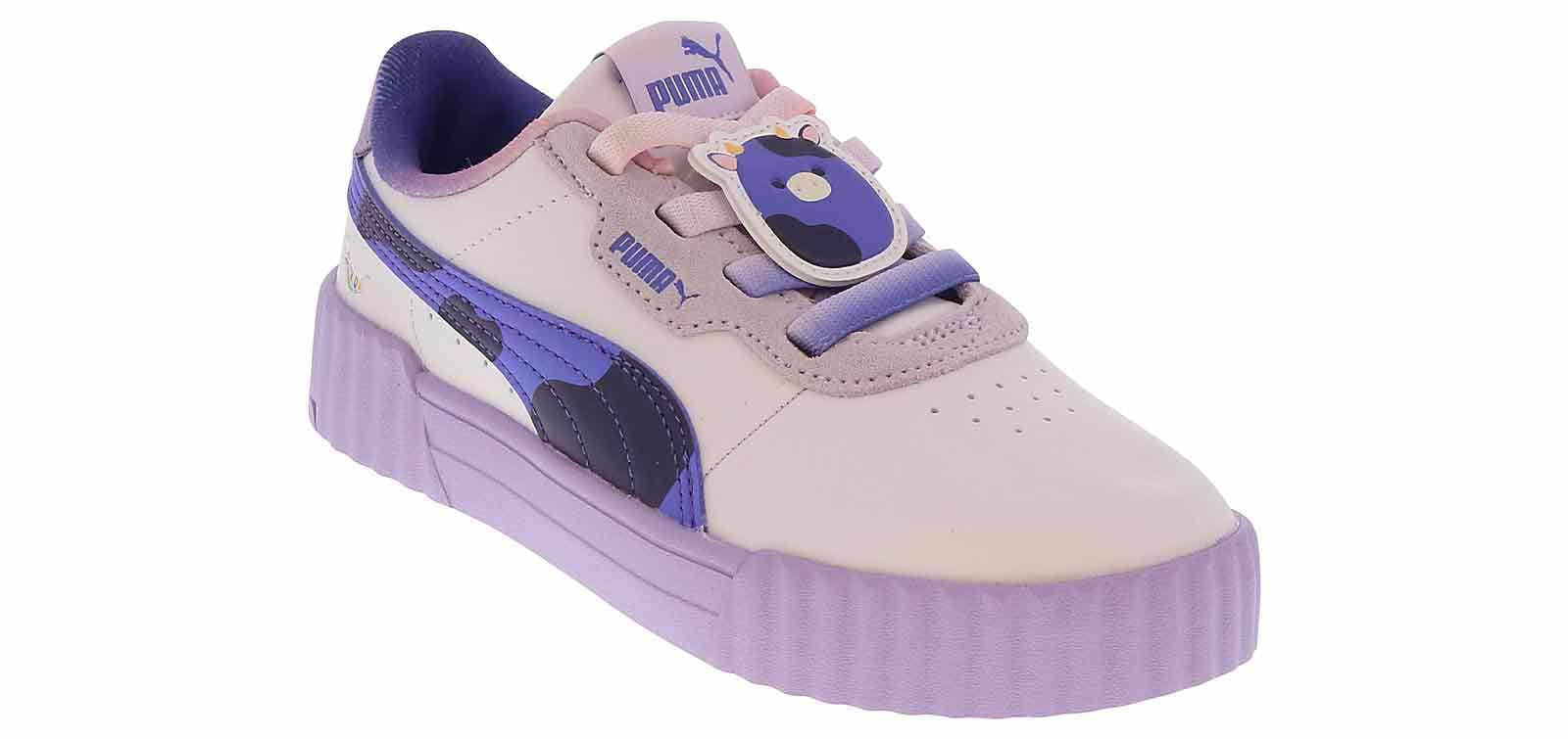 Let them keep up an active lifestyle with the Puma Carina 3.0 Squishmallow Youth Girls’ (11-3) Court Sneaker! This court-style sneaker is the perfect accessory to every outfit with its sleek synthetic leather upper and durable rubber outsole. The lace up closure ensures a secure fit, while the cushioned insole optimizes comfort. Cave in and grab the Puma Carina 3.0 Squishmallow Youth Girls’ (11-3) Court Sneaker for an unbeatable style!