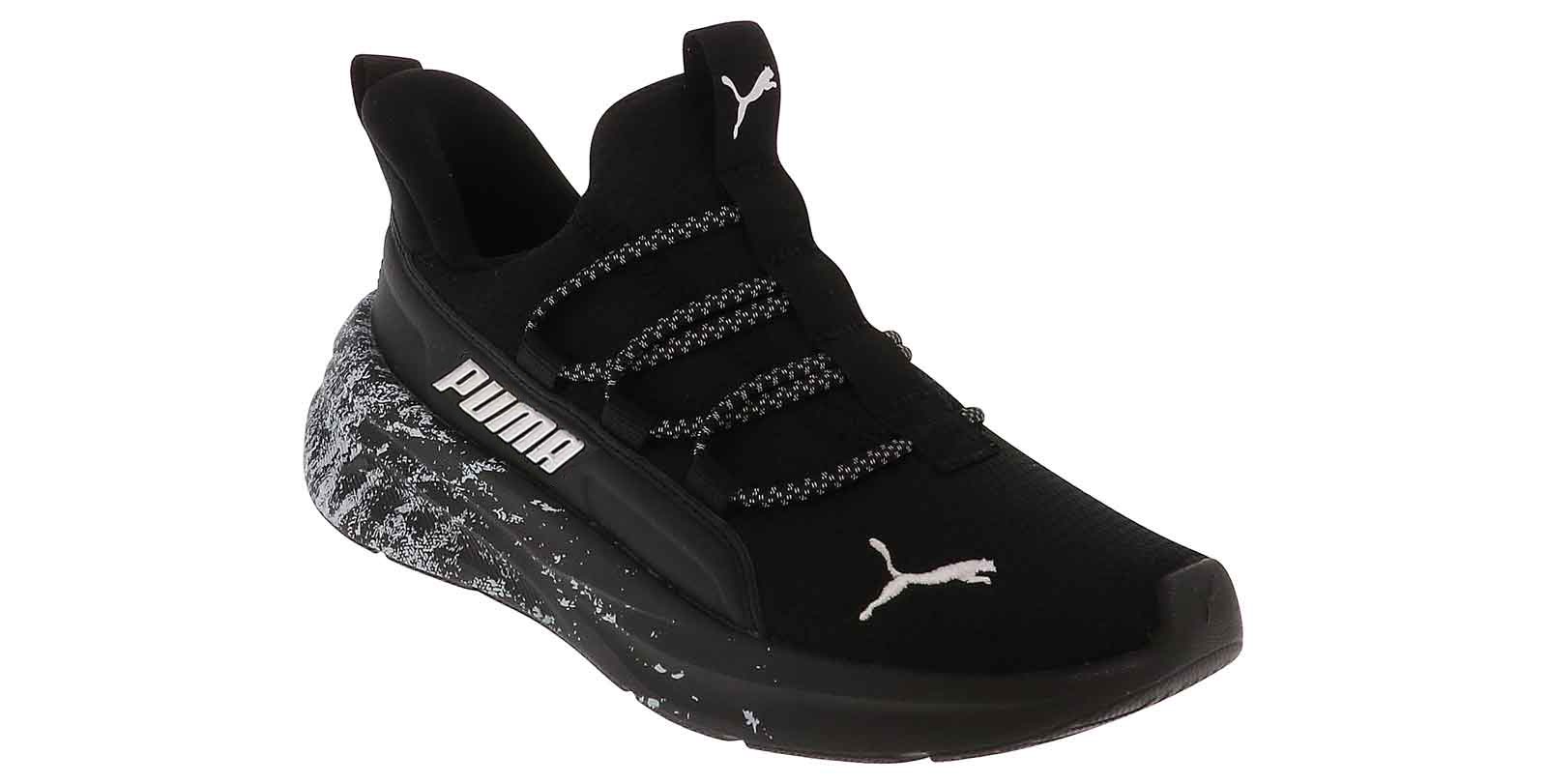 Fuel your child’s active adventures with the Puma One4All 2.0 BlizzRizz Youth Boys’ (11-3) Athletic Shoe! This sporty slip on style features a breathable mesh upper and a lightweight outsole for ease in every stride. The cushioned insole and no-tie elastic laces offer superb comfort and security. Keep your young athlete active and cool with the Puma One4All 2.0 BlizzRizz Youth Boys’ (11-3) Athletic Shoe.
