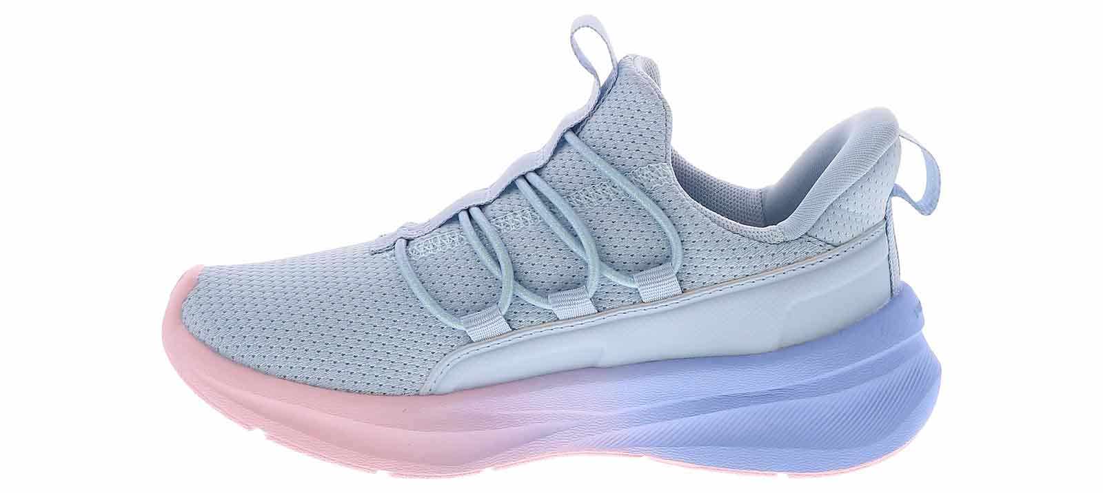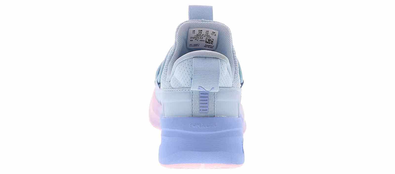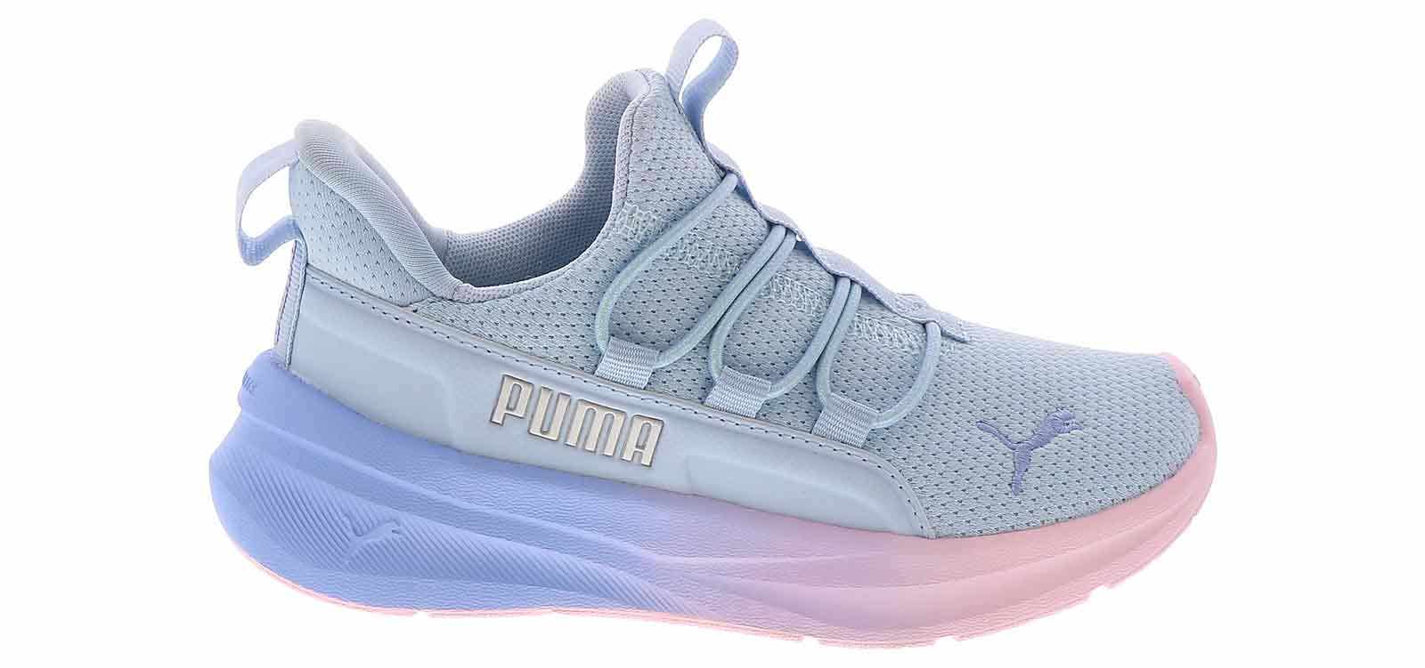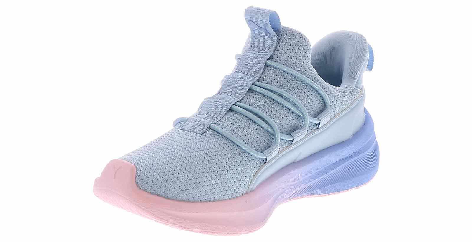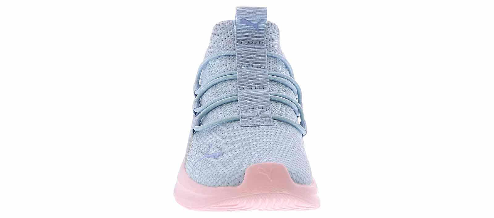 Experience the perfect blend of style and performance with the Puma One4All 2.0 Glitter Youth Girls’ (11-3) Running Shoe! This trendy slip on shoe features a synthetic mesh upper and a soft cushioned insole for breathability and comfort. The no-tie elastic laces and lightweight outsole allow security and ease with every stride. Ensure your child stays at the top of their game in both fashion and sports with the Puma One4All 2.0 Glitter Youth Girls’ (11-3) Running Shoe!