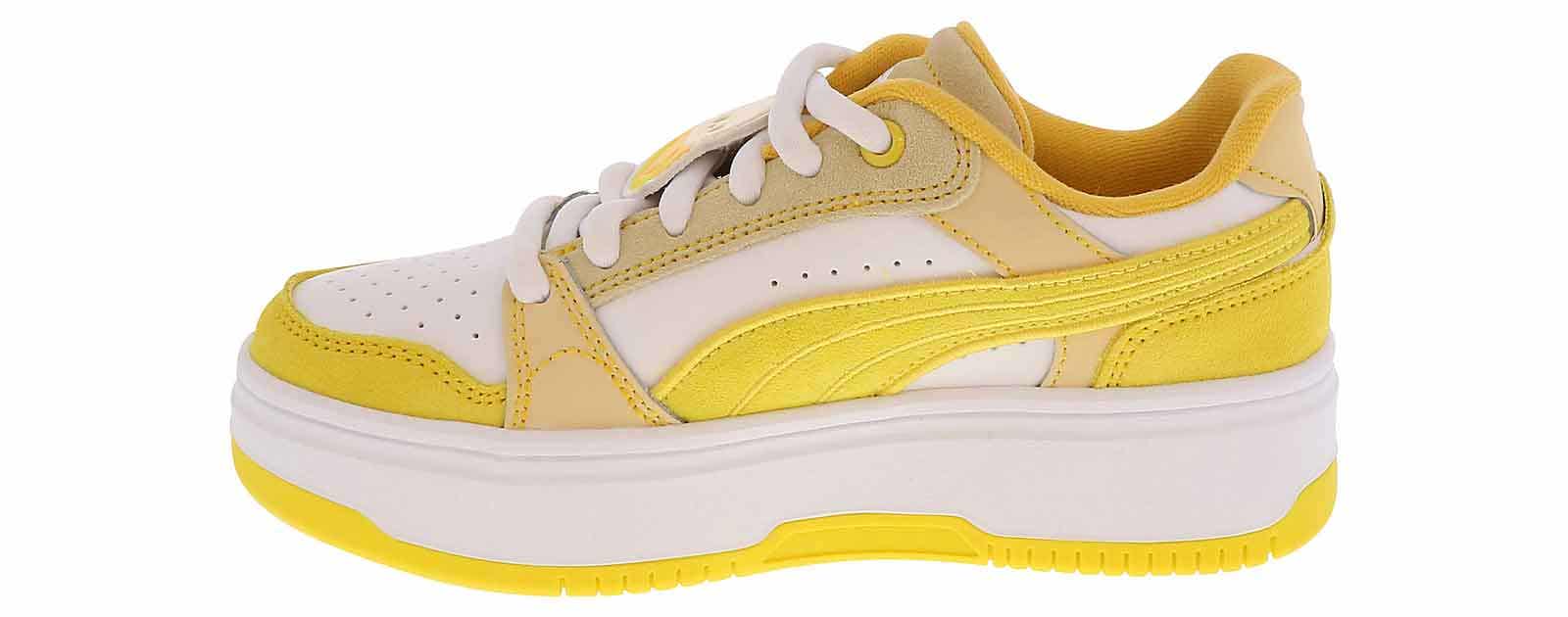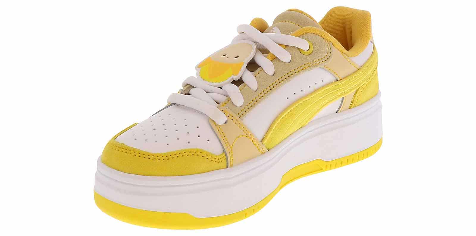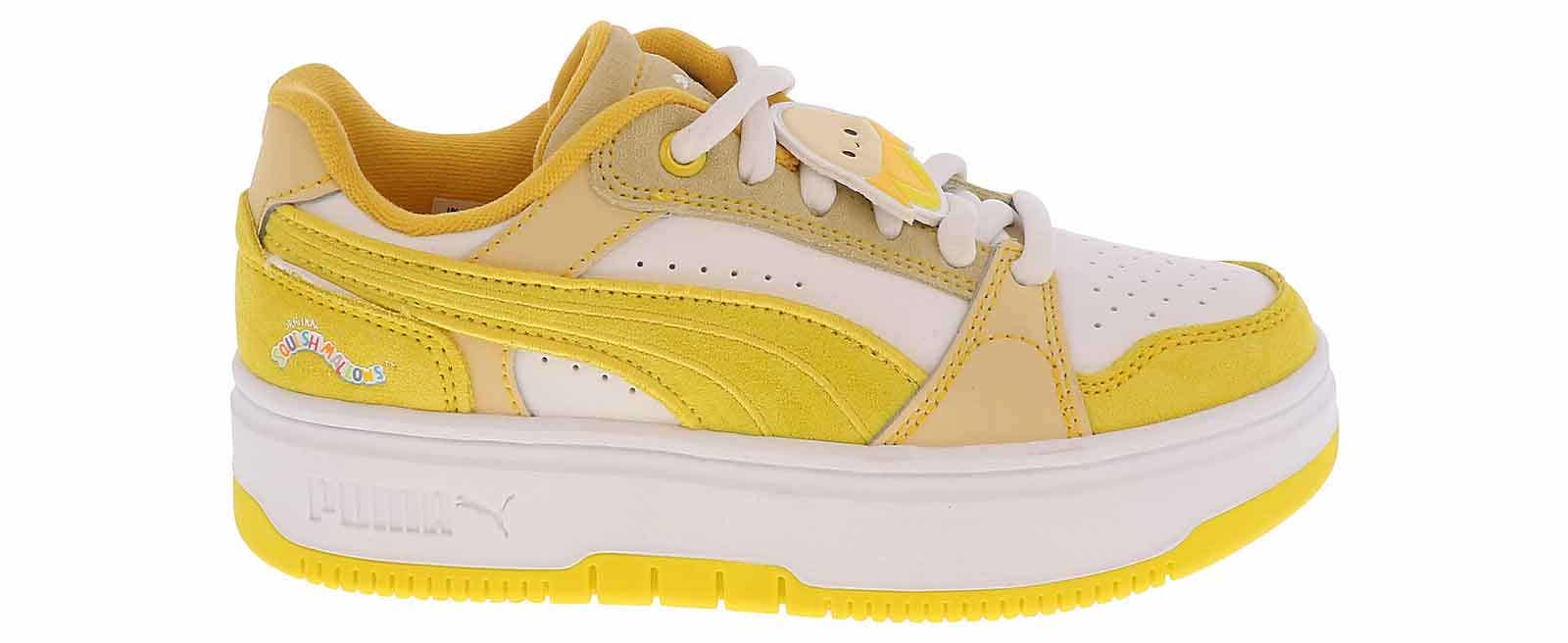 Let them keep up an active lifestyle with the Puma Rebound Femme Squishmallow Youth Girls’ (4-7) Platform Sneaker! This court-style sneaker is the perfect accessory to every outfit with its sleek synthetic leather upper and durable rubber outsole. The lace up closure ensures a secure fit, while the cushioned insole optimizes comfort. Cave in and grab the Puma Rebound Femme Squishmallow Youth Girls’ (4-7) Platform Sneaker for an unbeatable style!